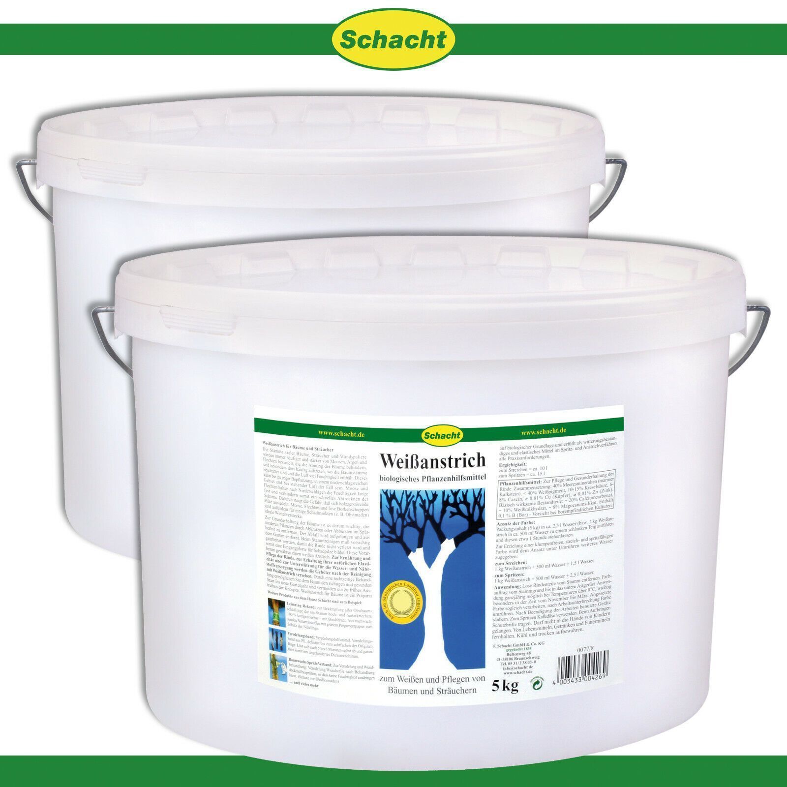 Schacht Schacht 2 x 5 kg Weißanstrich Obstbäume Pflege Frostschutz Rinde Schutz Zierholz