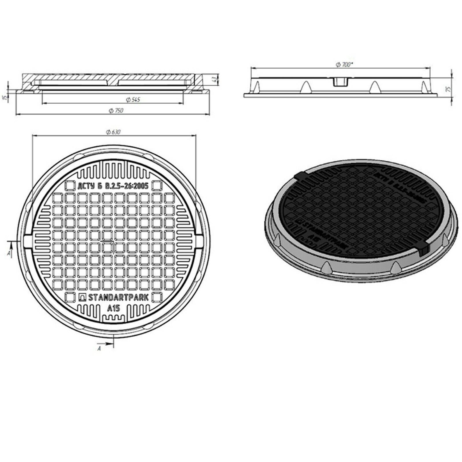 Schachtabdeckung Kanaldeckel Polypropylen DN600 schwarz 1,5 T 600mm