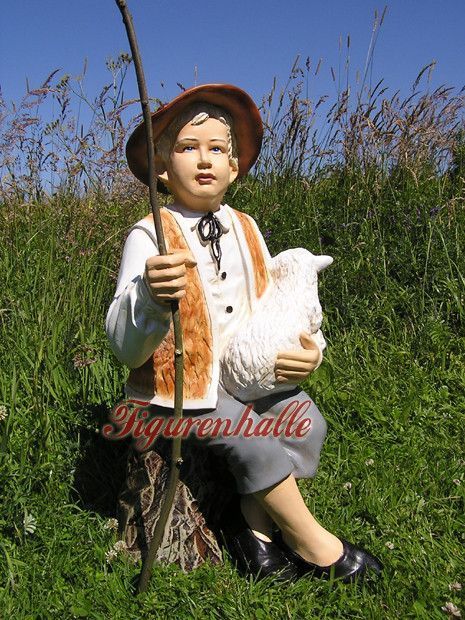 Schäfer Schaf Lamm Dekofigur Skulptur Gartenfigur Garten Deko Figur Hiertenjunge
