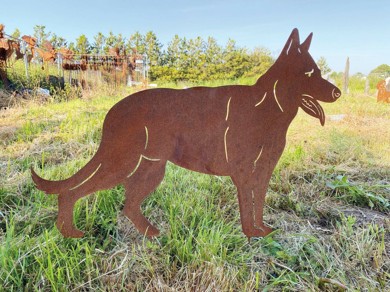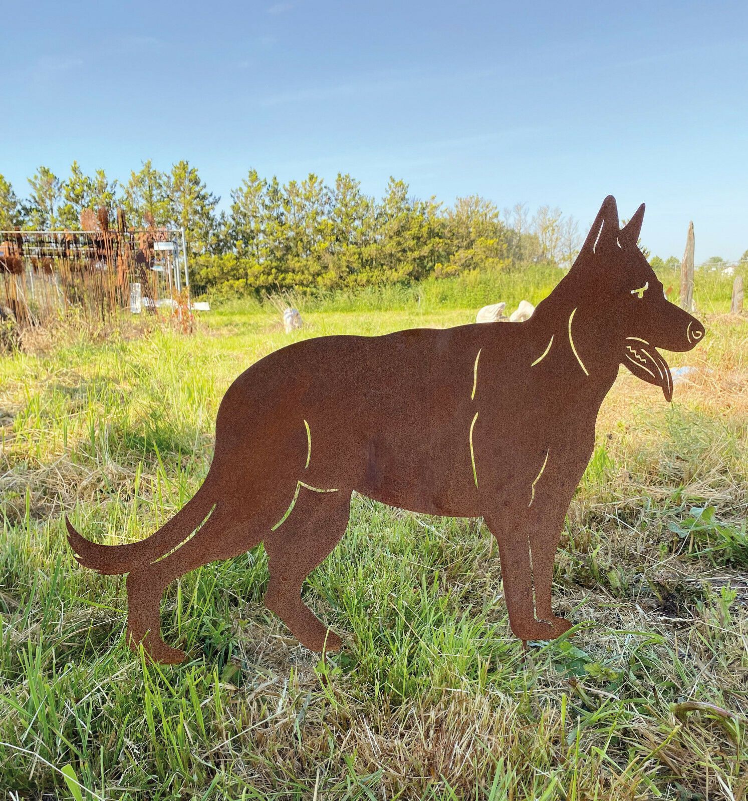 Schäferhund stehend 80x57cm Gartenstecker Edelrost Rost Metall Rostfigur Hund