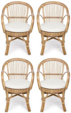 • Casa Padrino Luxus Gartenstuhl 4er Set Naturfarben / Weiß 57 x 61 x H. 80 cm - Rattan