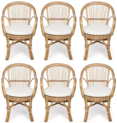 • Casa Padrino Luxus Gartenstuhl 6er Set Naturfarben / Weiß 57 x 61 x H. 80 cm - Rattan
