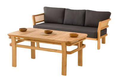 Gartenmöbel Set Schwarz aus Holz mit Sofa und Esstisch