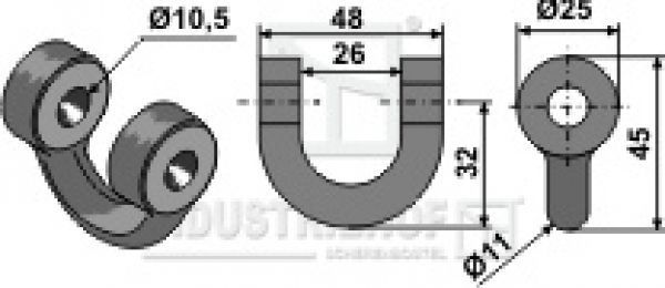 Schäkel 63-MUE-99 passend für Müthing Mulcher Technische Datem: Best.-Nr.63-MUE-99 Gewicht 0,084 kg Dicke 11mm Länge bis mitte Bohrung 32mm Länge gesamt 45mm Breite aussen 48mm Breite innen 26mm Bohrung 10.5 Durchmesser Auge 25mm Bild abweichend Artikel passend für Fabrikat: Müthing Obenstehende Ori