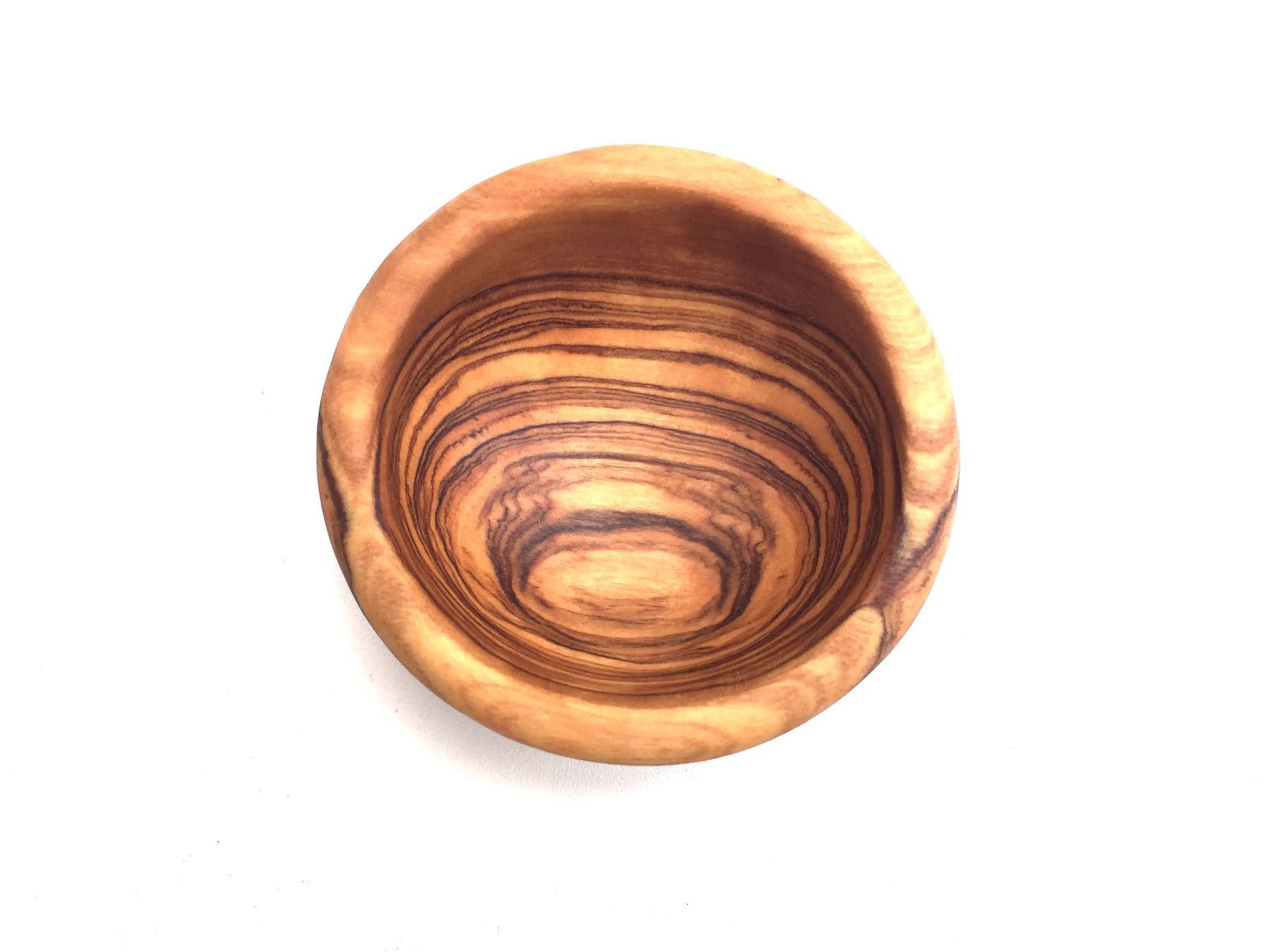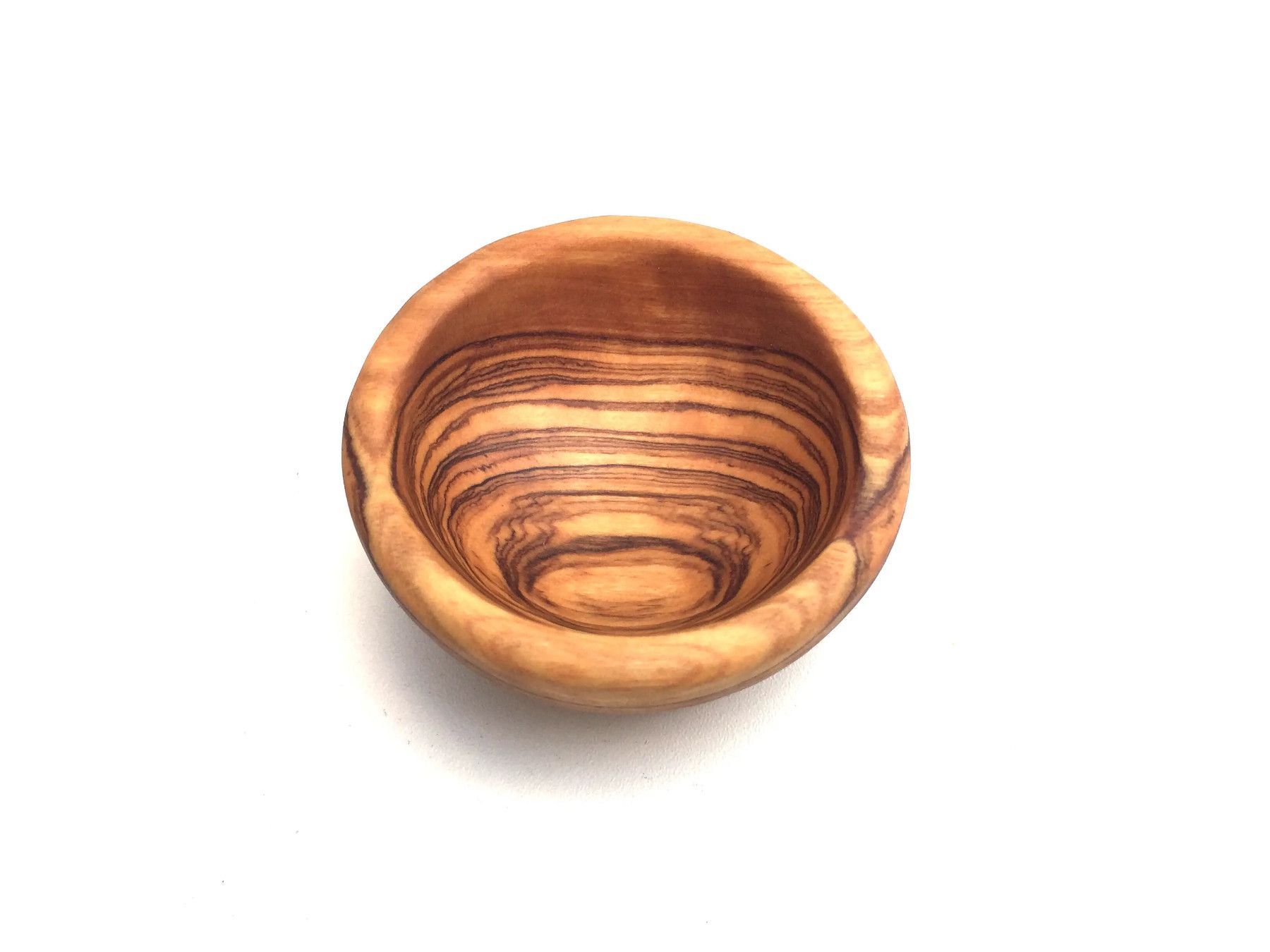 Schälchen Durchschitt 8 cm Das Schälchen ist aus Olivenholz und in Handarbeit angefertigt. Der künstlerisch begabte Handwerker hat jedes Stück einzeln per Hand hergestellt, was jedes Stück zu einem Unikat macht. Die einzigartige rötlich-braune Maserung mit einem unregelmäßigen Faserverlauf auf glatt