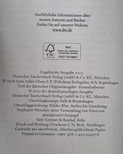 Schändung/ Kriminal-Thriller von Jussi Adler Olsen / TB-Auflage aus 2013 !