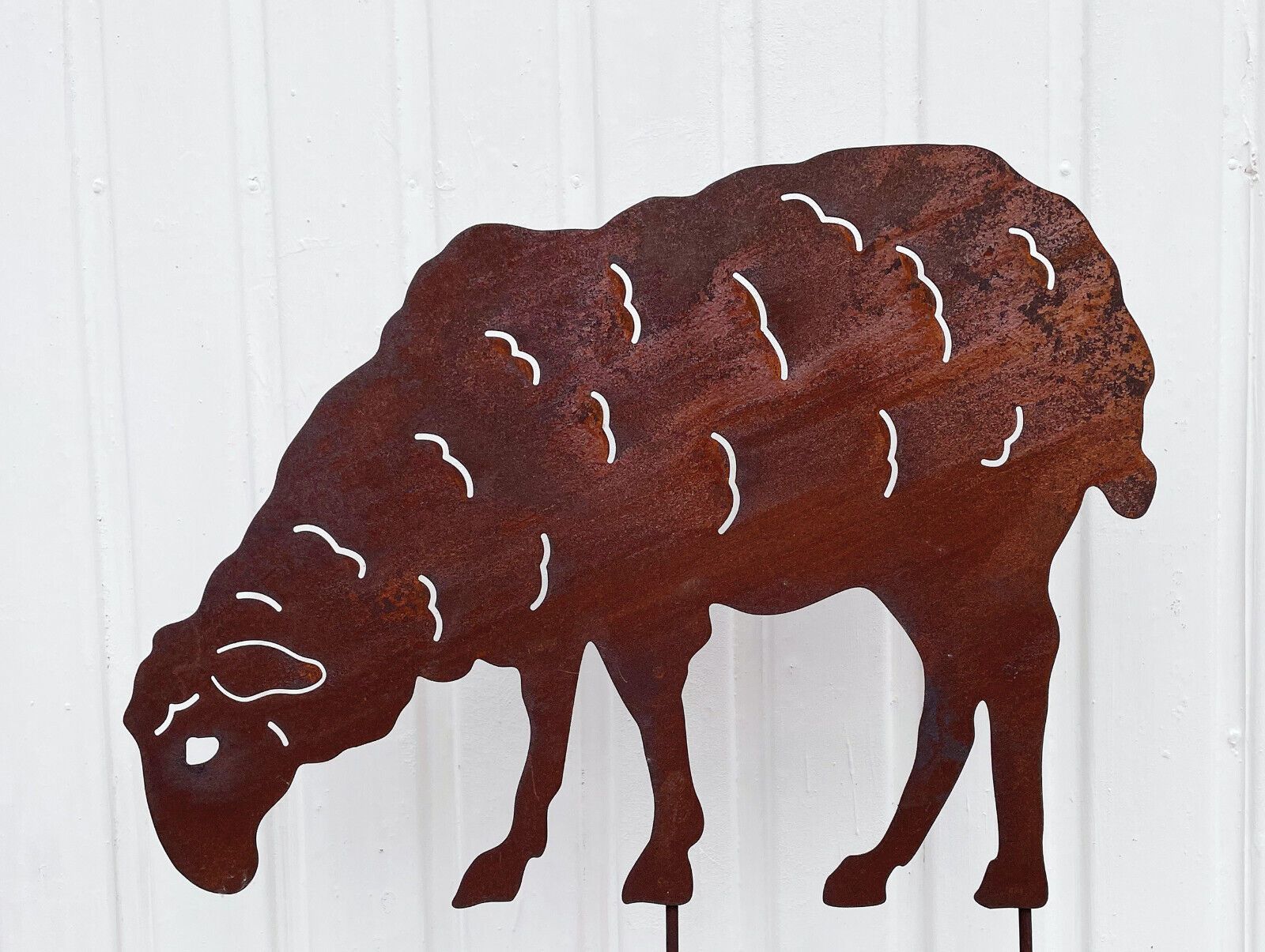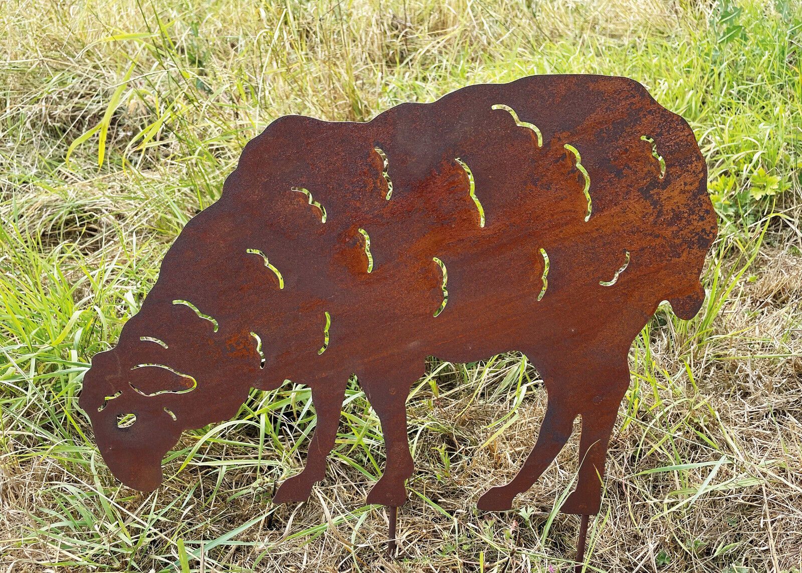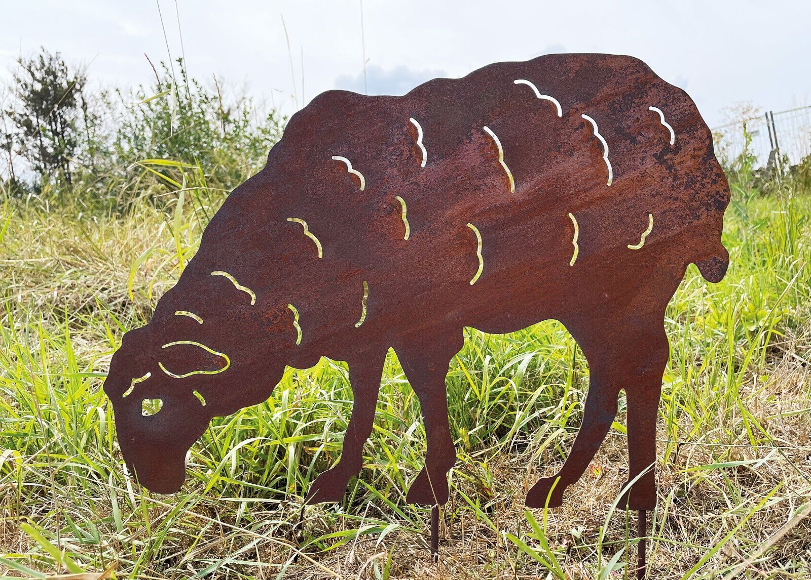 Schaf grasend zum Stecken 37x52cm Gartenstecker Edelrost Rost Metall Ziege
