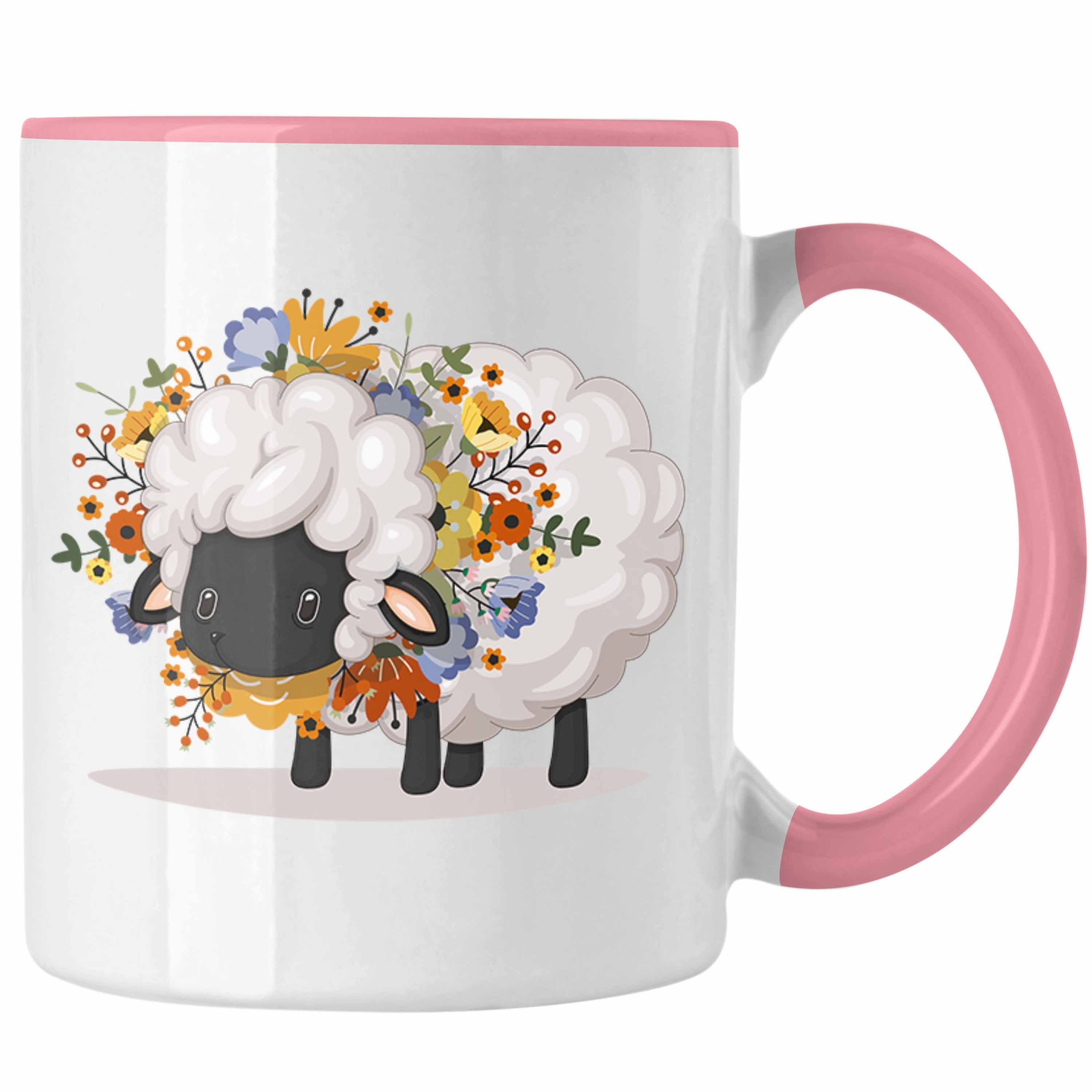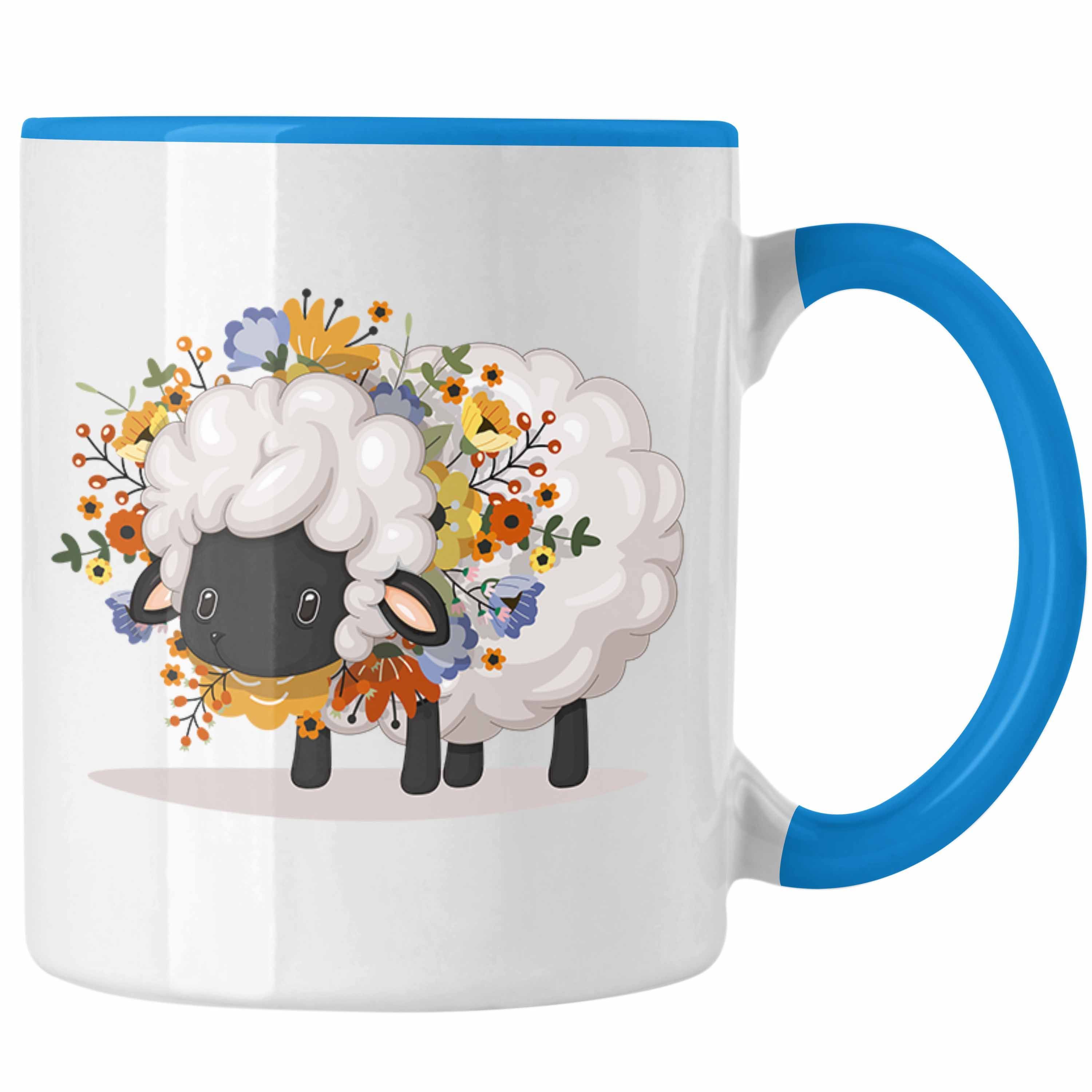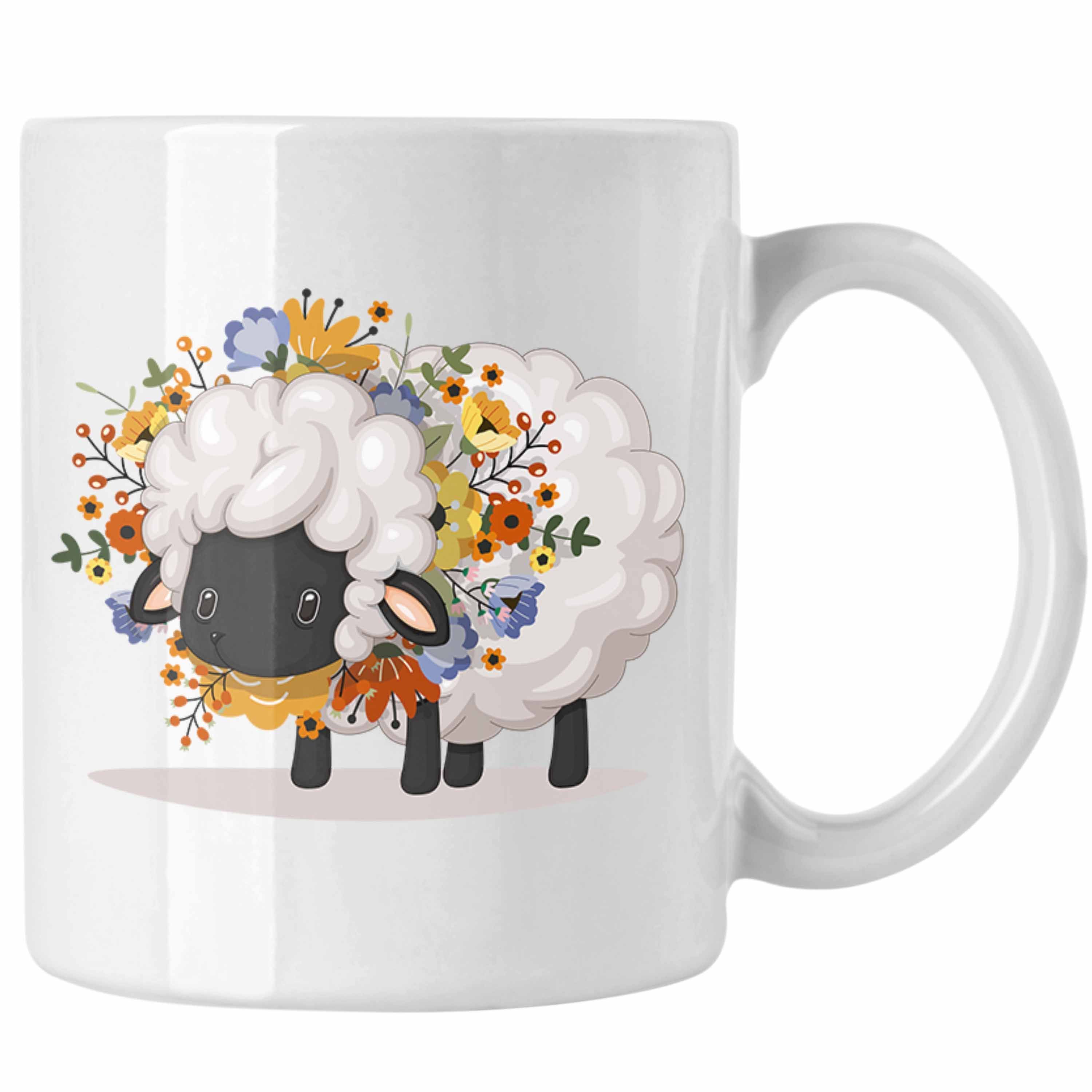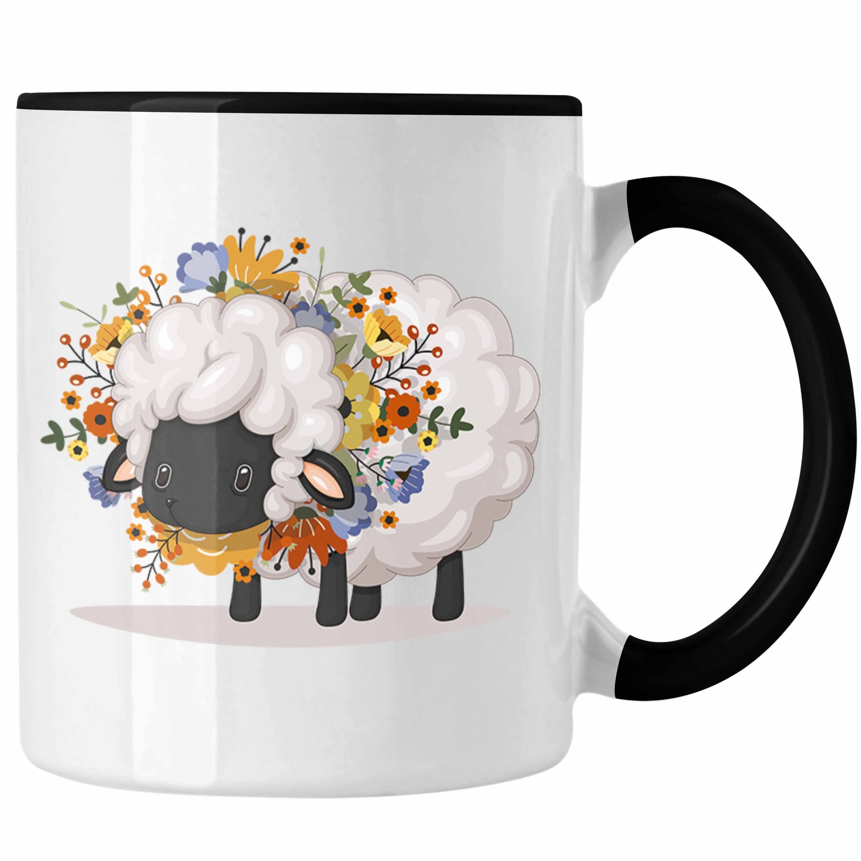 Schaf mit Blumen Tasse Geschenk Grafik Séße Schaf Tasse Geschenkidee Schafliebhaber