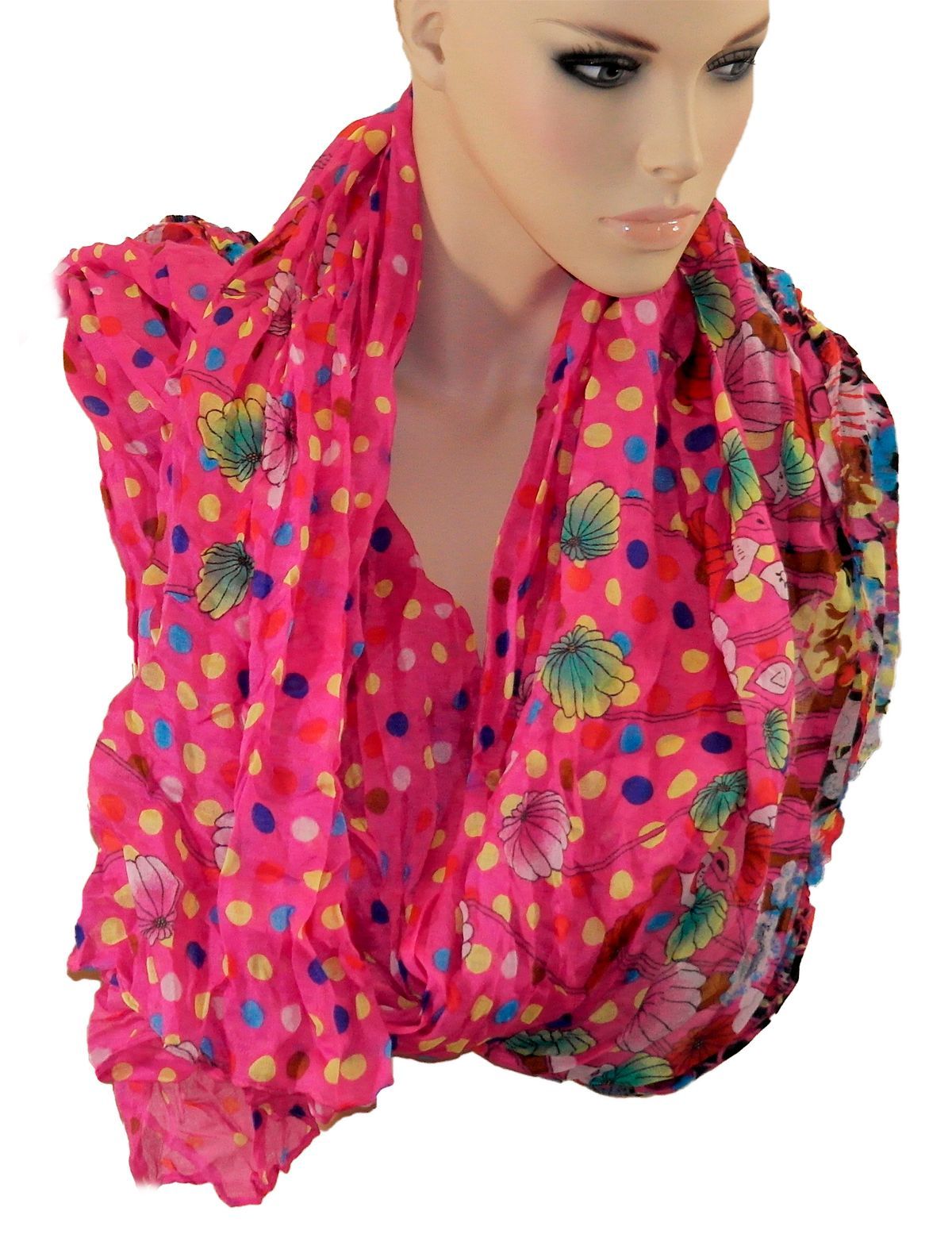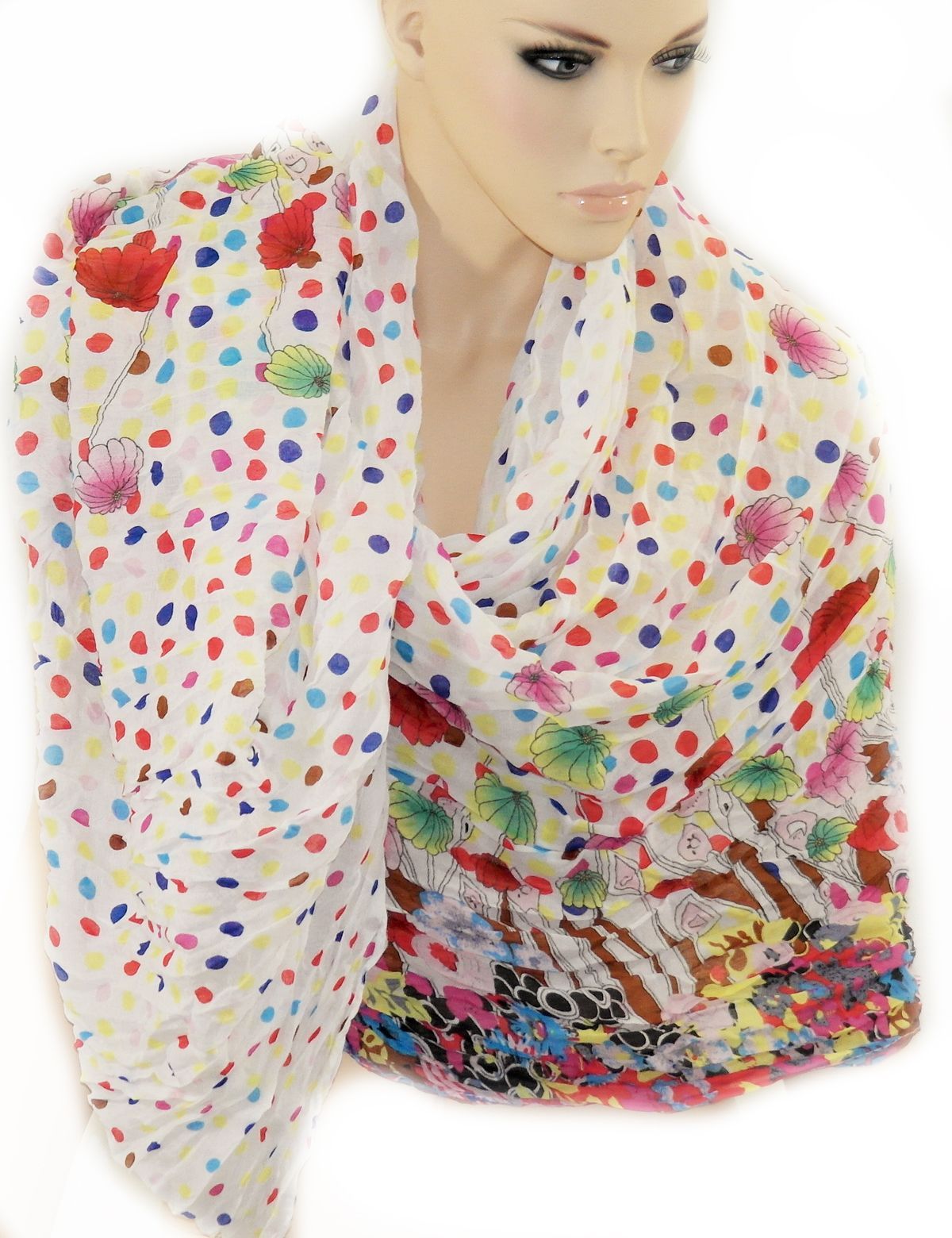Schal Tuch Punkte Blumen Halstuch Rundschal Viskose 1,8m lang Umhängetuch Weich