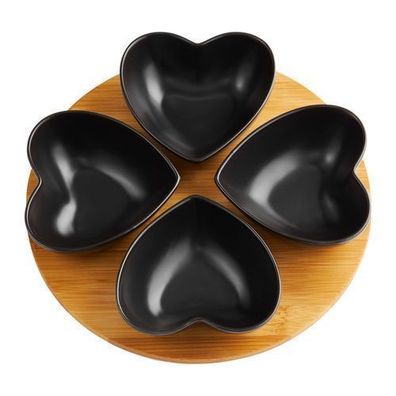 • Dipschalen Set 4-teilig auf Bambusbrett Natural Herzen Schwarz Ambition