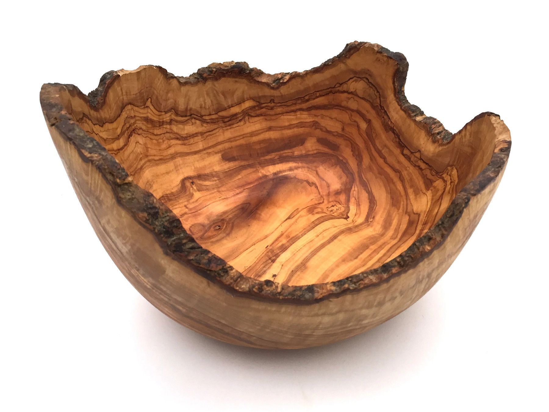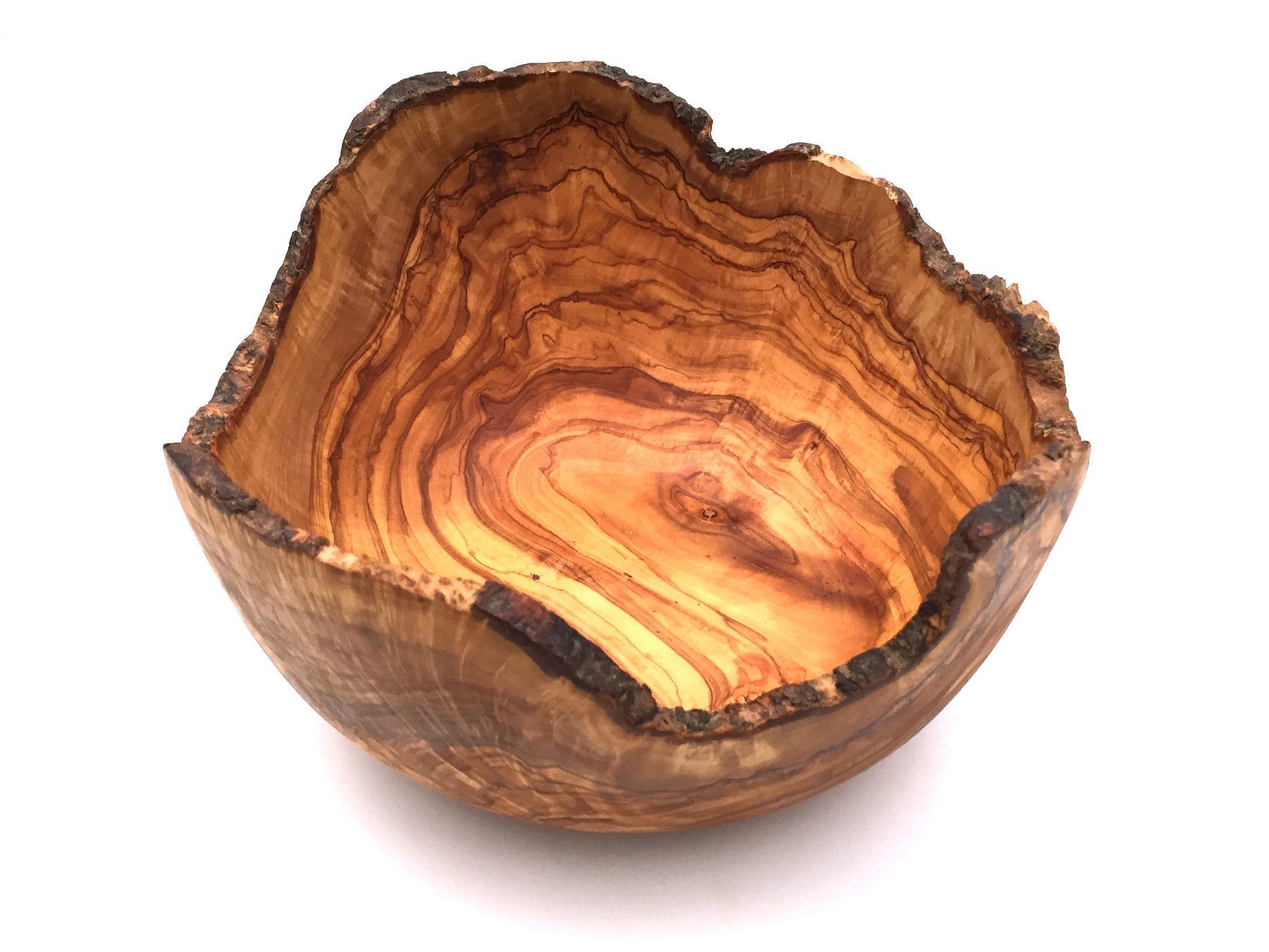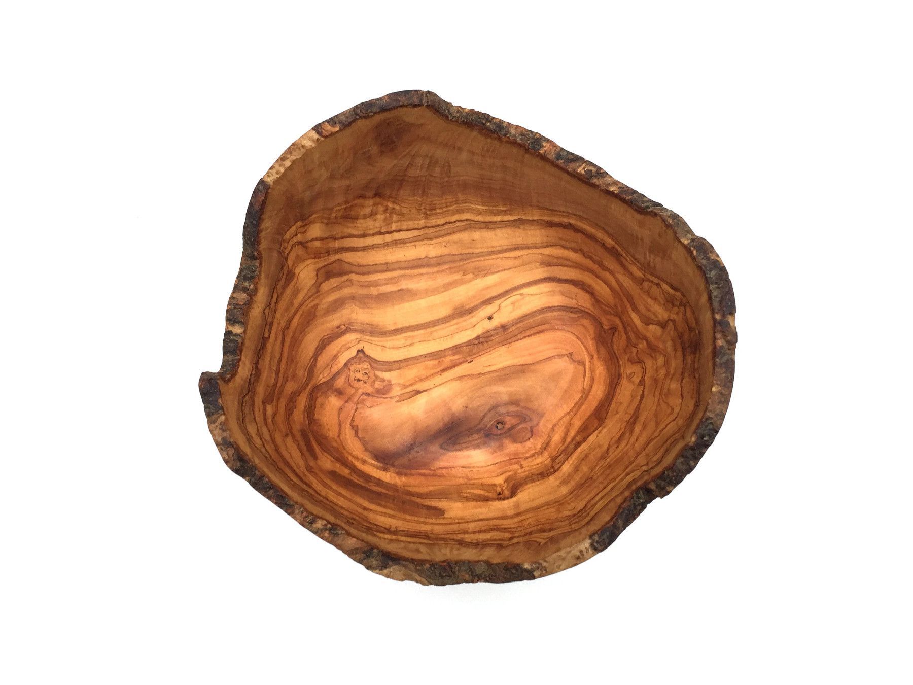 Schale Durchschitt 23 24 26 27 28 29 30 cm Die Schale mit der rustikalen Umrandung ist aus Olivenholz und in Handarbeit angefertigt. Der künstlerisch begabte Handwerker hat jedes Stück einzeln per Hand hergestellt, was jedes Stück zu einem Unikat macht. Die einzigartige rötlich-braune Maserung mit e