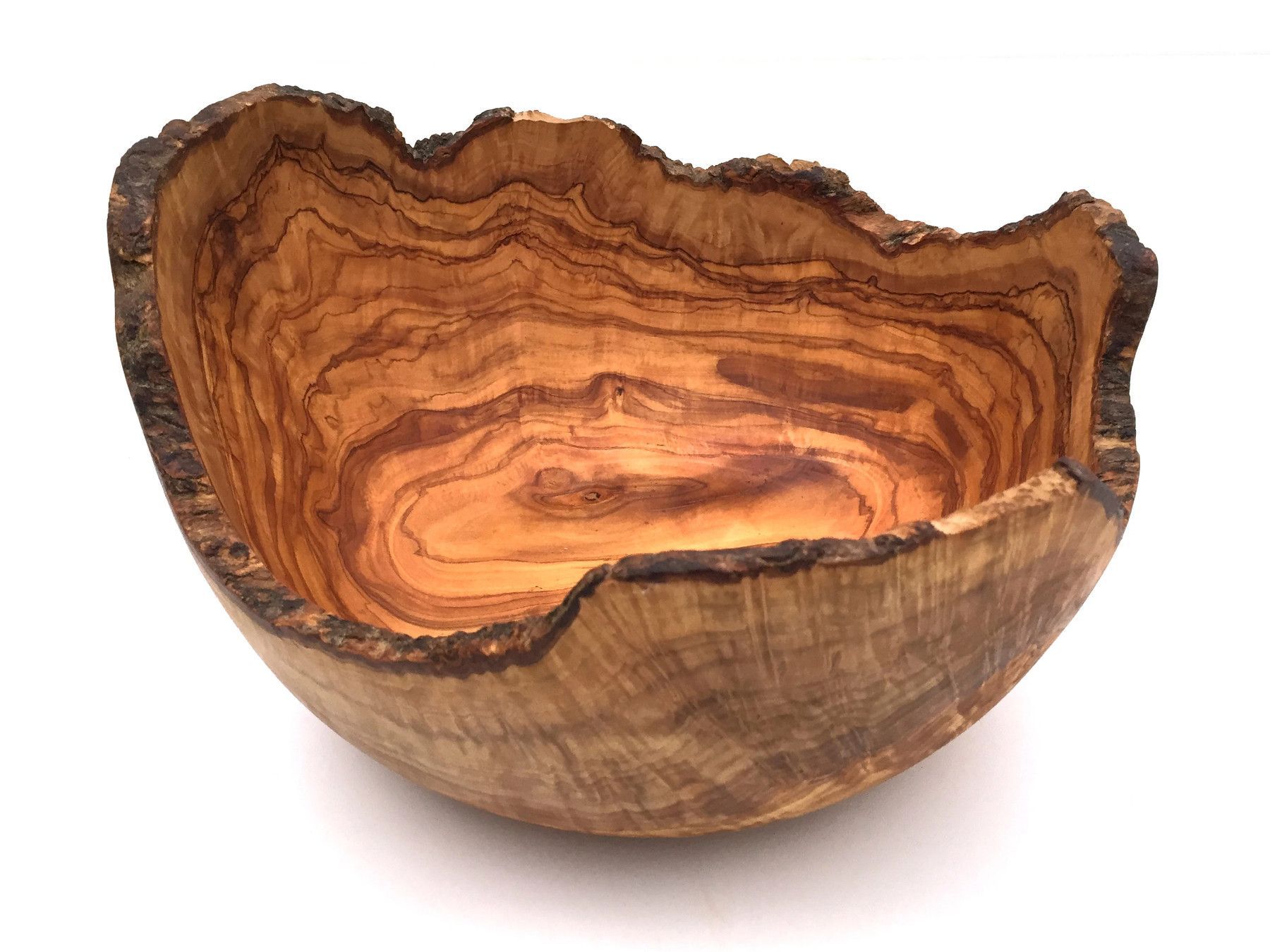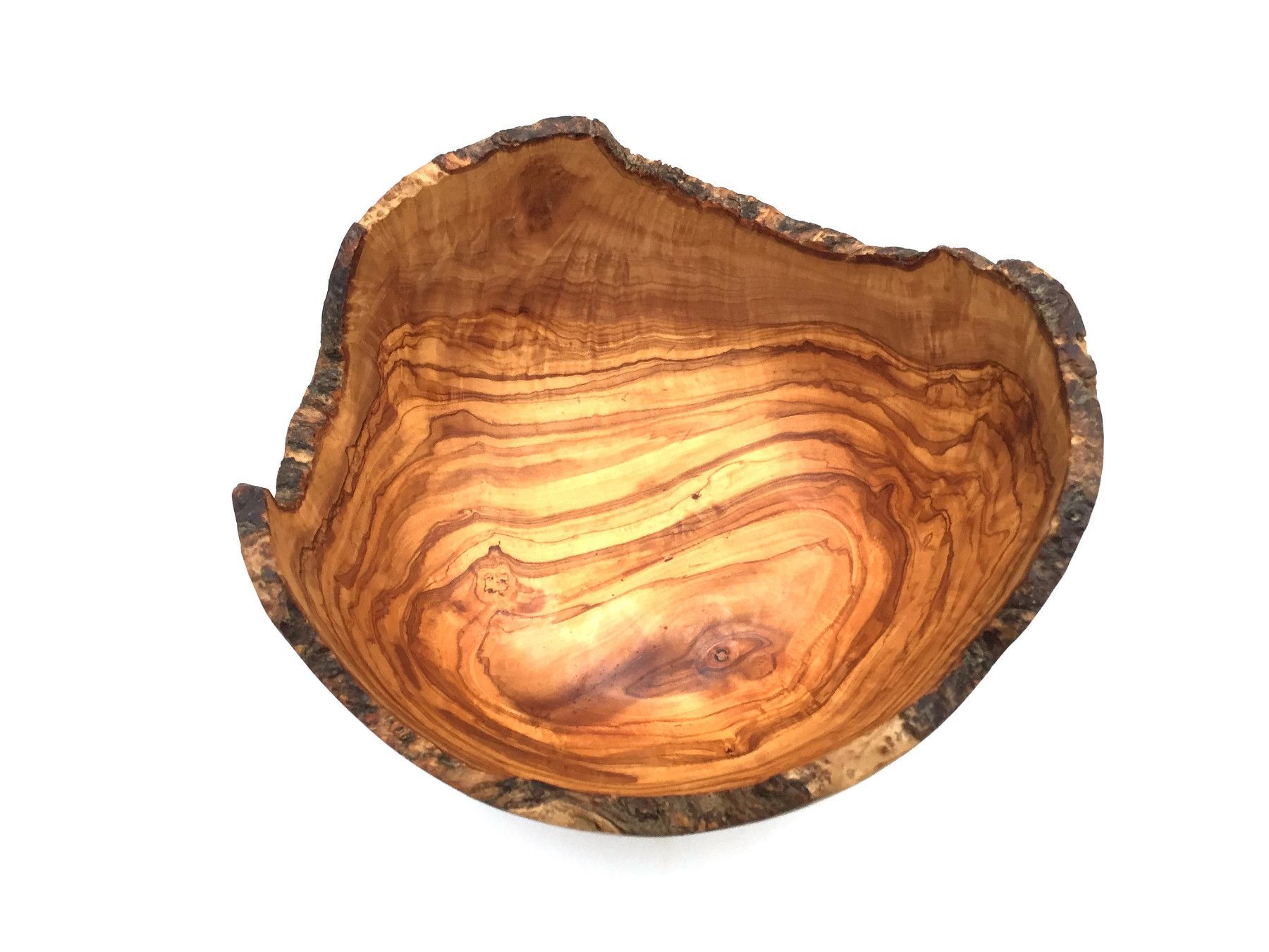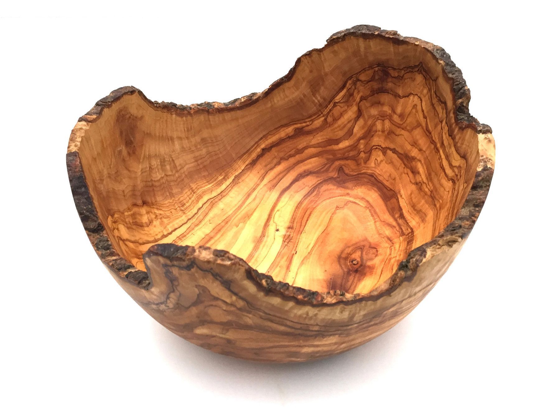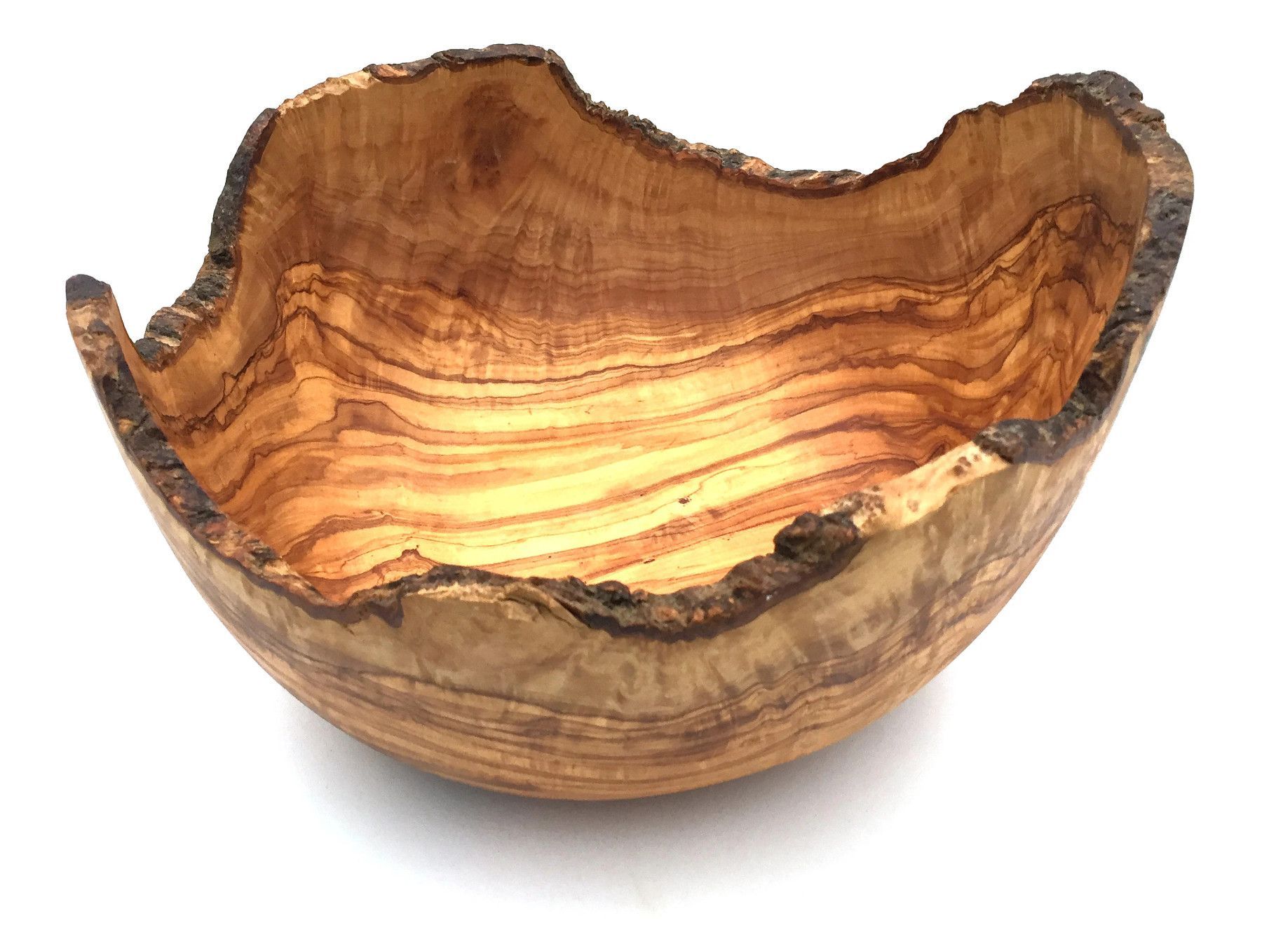 Schale Durchschitt 23 24 26 27 28 29 30 cm Die Schale mit der rustikalen Umrandung ist aus Olivenholz und in Handarbeit angefertigt. Der künstlerisch begabte Handwerker hat jedes Stück einzeln per Hand hergestellt, was jedes Stück zu einem Unikat macht. Die einzigartige rötlich-braune Maserung mit e