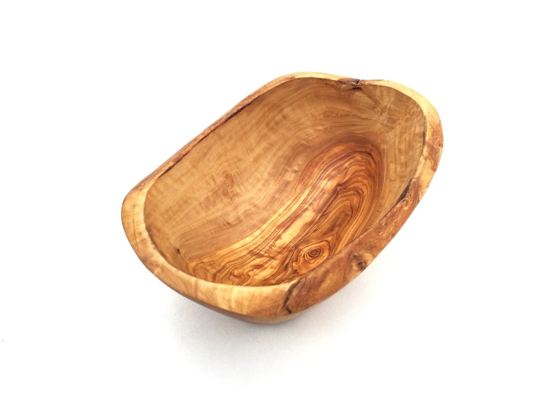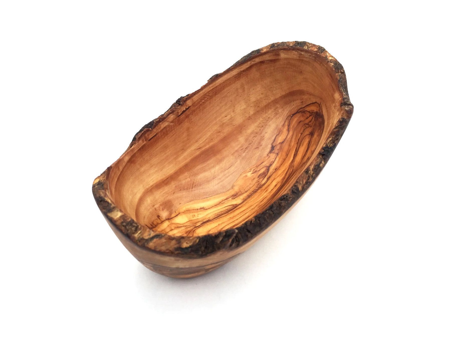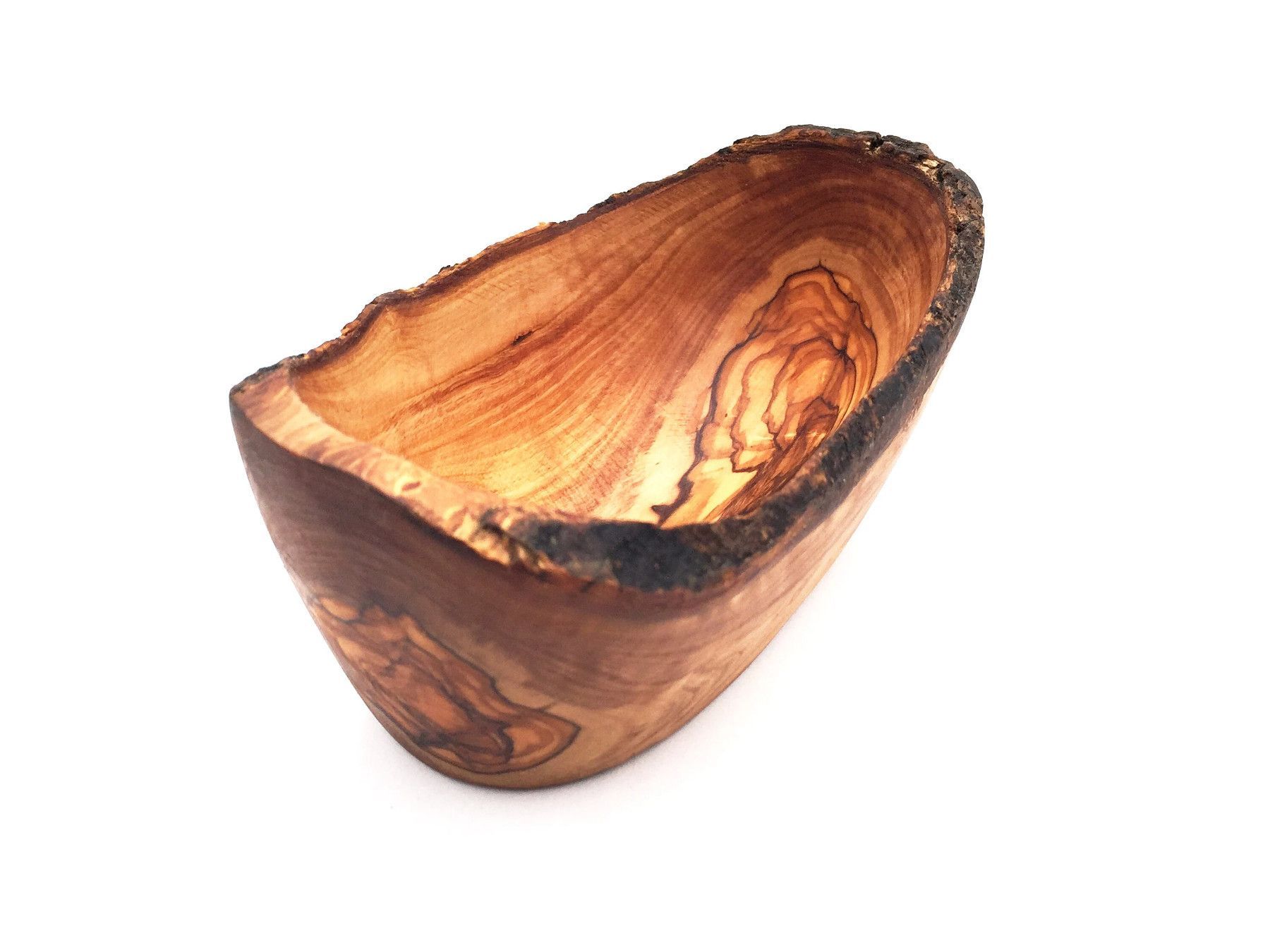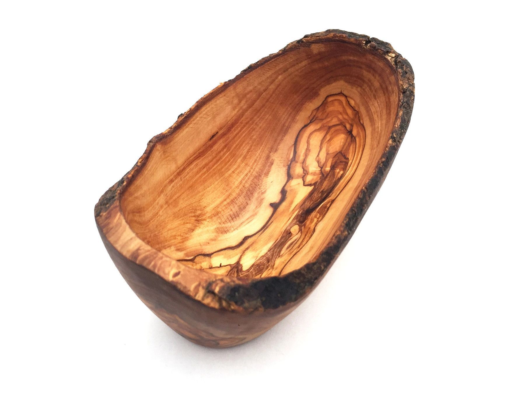 Die ovale Schale ist aus Olivenholz in Handarbeit angefertigt. Die künstlerisch begabten Handwerker haben jedes Stück einzeln per Hand hergestellt. Sie haben besonderen Wert darauf gelegt die rustikale Umrandung des Schnittholzes beizubehalten, was jedes Stück zu einem Unikat macht. Die einzigartige