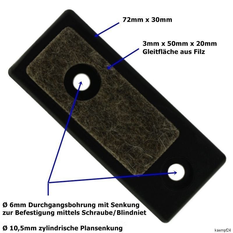 Schalengleiter mit Gleit Filz f. gebogene Rohre Ø 25mm R73 schwarz Freischwinger