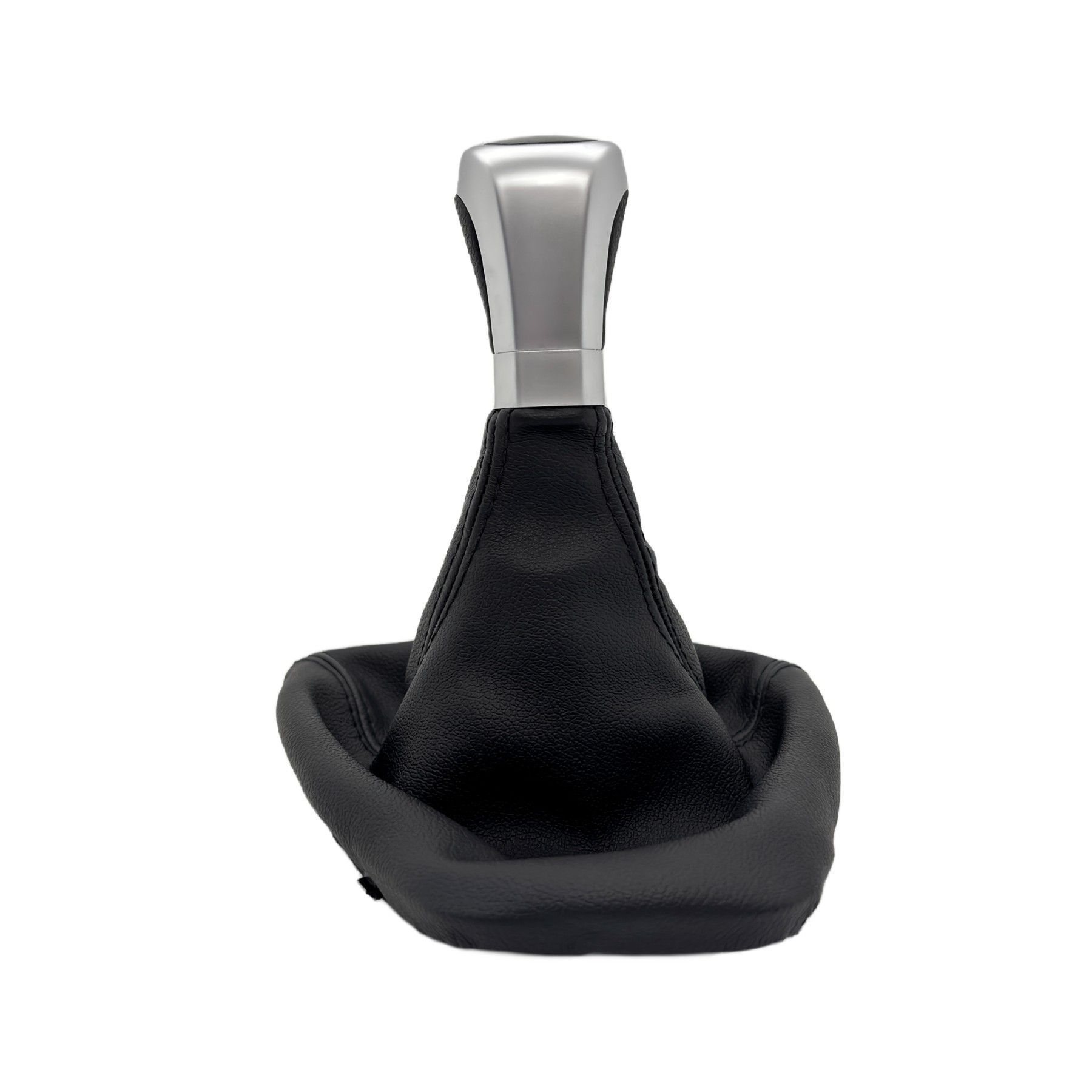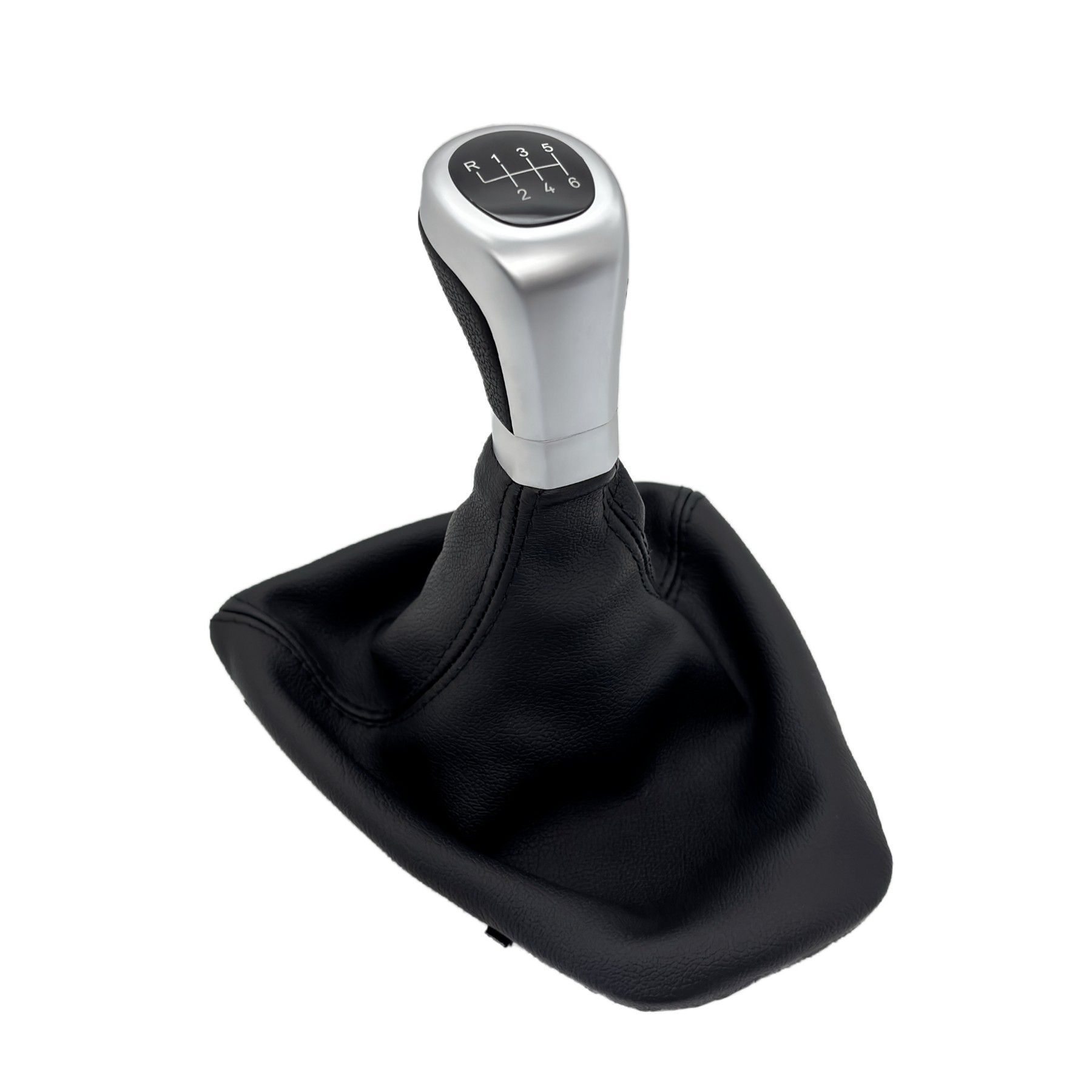 Schalthebel kurz Silber in Aluminium-Optik 6-Gang + Schaltmanschette Kunstleder mit Rahmen für BMW 3er E90 E91 E92 E93 Info: - Material Schaltknauf: Kunstleder Schwarz, Kunststoff Silber in Alu-Optik - Länge Schaltknauf: 75mm - Material Schaltsack: Kunstleder Schwarz - Nahtfarbe: Schwarz - Rahmen: K