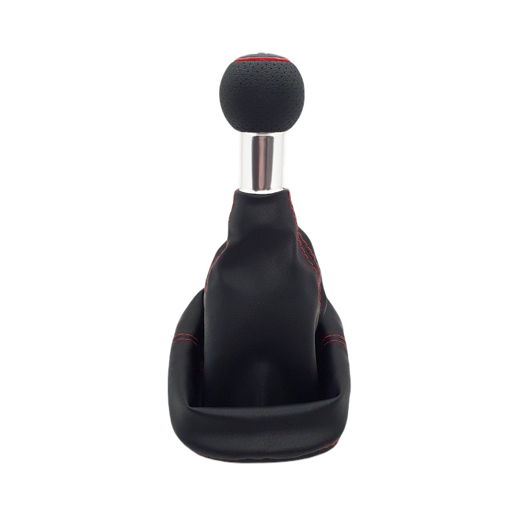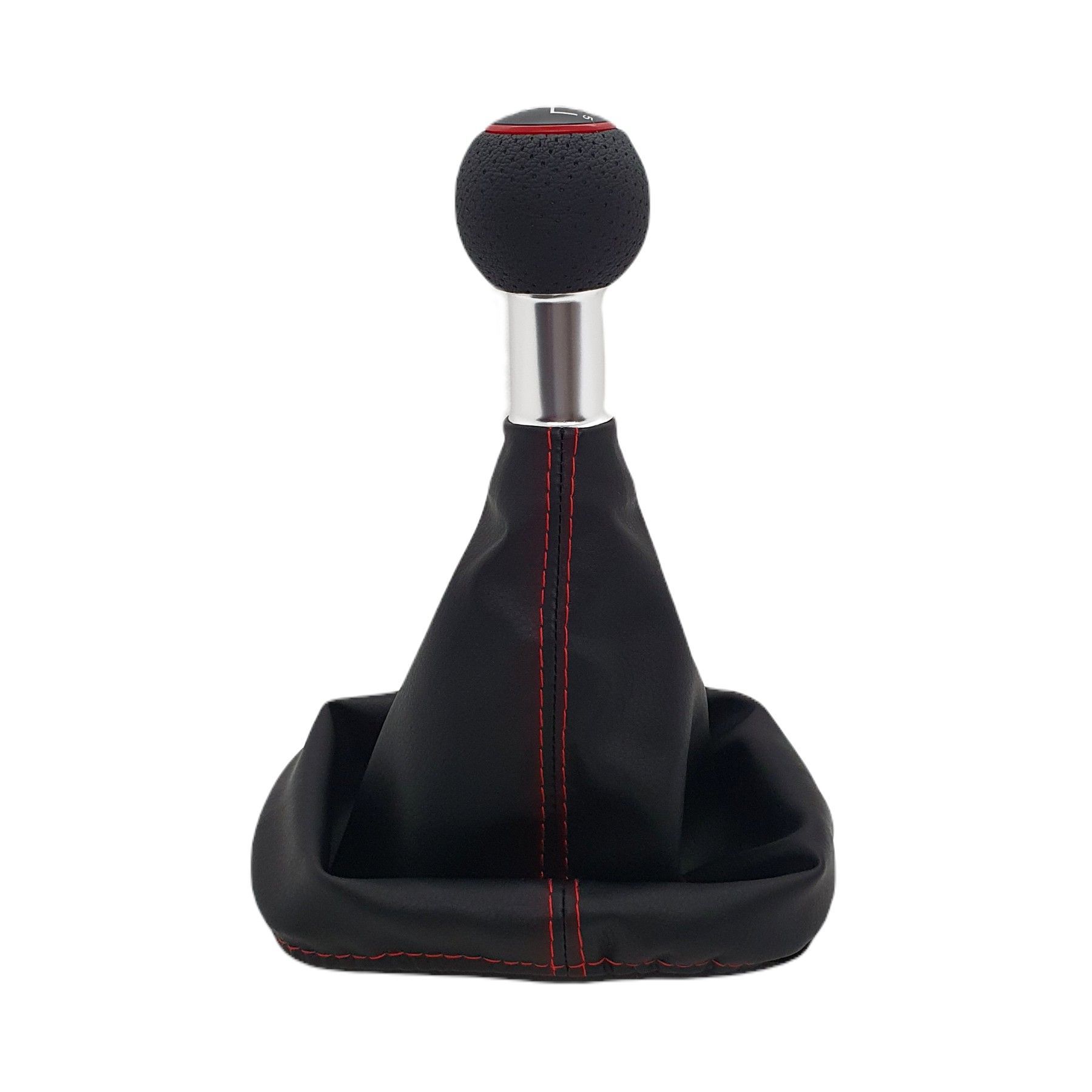 Schaltknauf und Schaltsack Kunstleder Schwarz Rot 5-Gang ohne Rahmen für Volkswagen Golf 2 3 4 Cabrio Polo Passat Jetta Corrado Scirocco Weitere Infos: - für 12mm Schaltstange (ohne Schraubgewinde) - Schaltknauf aus perforiertem Kunstleder - Schaltmanschette aus Kunstleder - Farbe des Schaltknaufs: