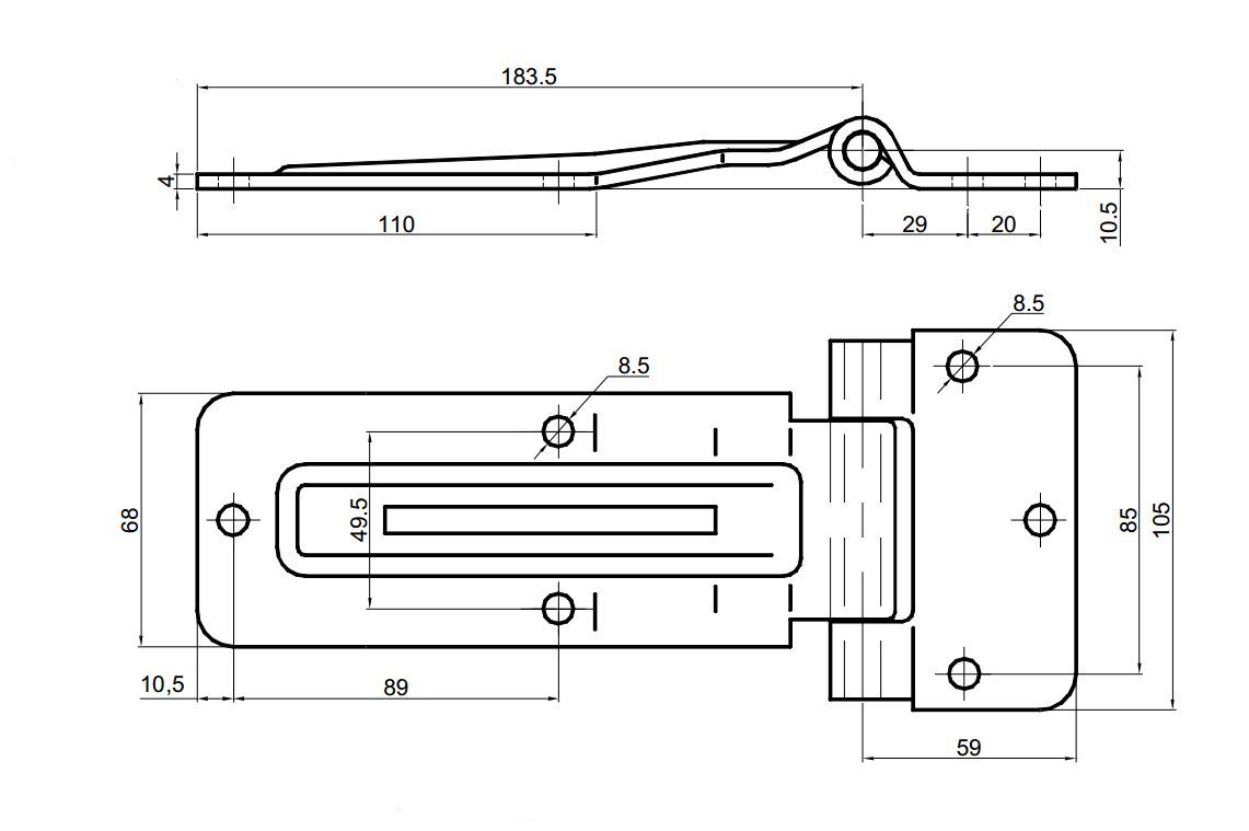 Scharniere Edelstahl PKW Anhänger, LKW (paarweise) groß 183,5/59 x 105 mm Nr.106200