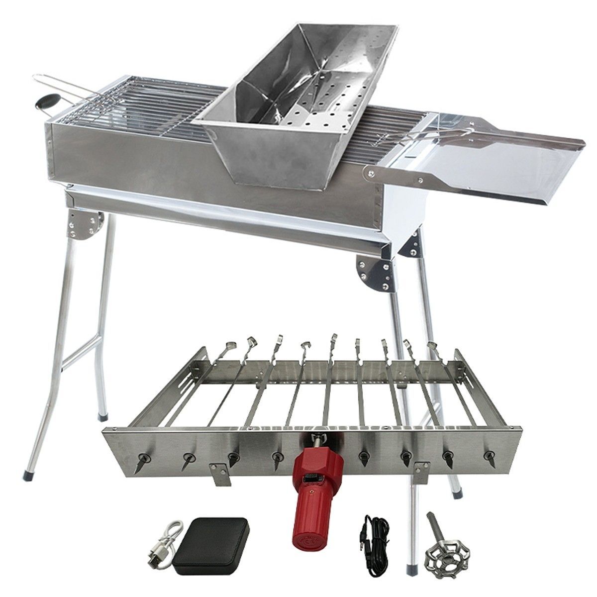 Schaschlikgrill Set XXL, Grillaufsatz | 9 Drehspieße | Powerbank | Motor | Schaschli