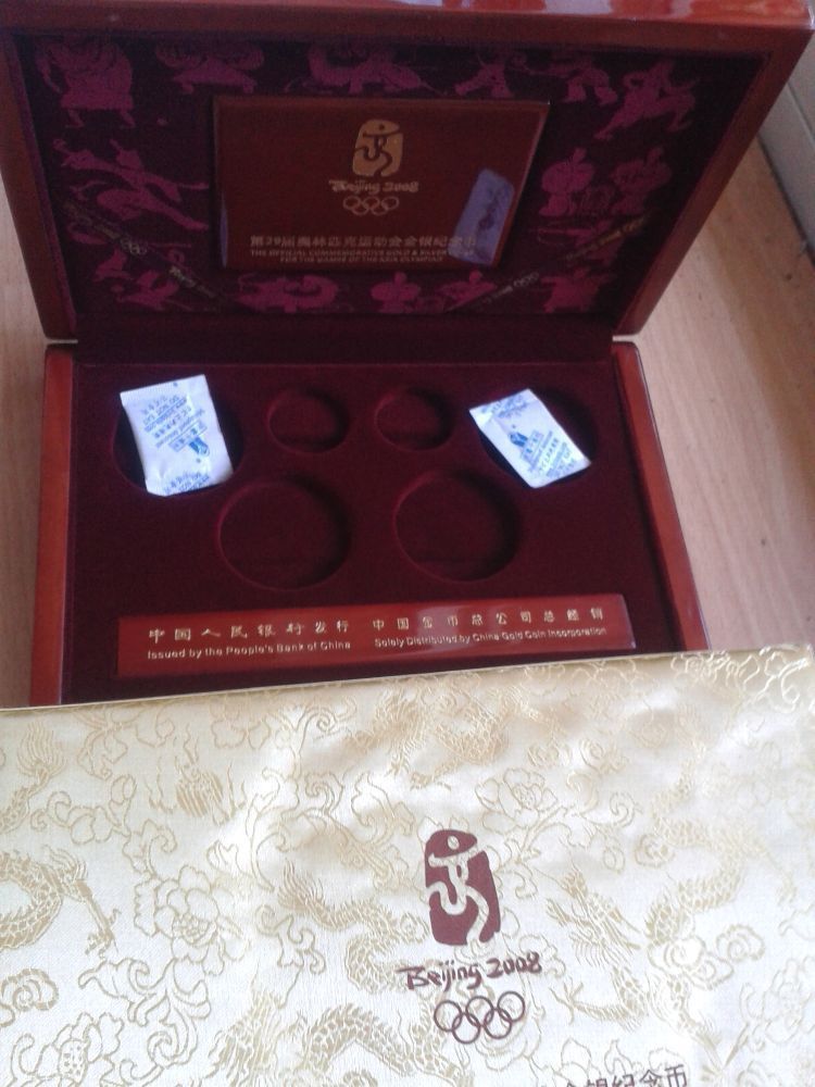 Schatulle für 2 x 150 Yuan PP Gold + 4 x 10 Yuan 2008 Silber PP Olympia Peking