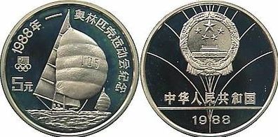 • Silber China 5 Yuan 1988 Olympia Segelregatta