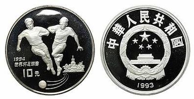 • China Silber PP 10 Yuan 1993 Fußball-WM in Amerika, Zweikampf