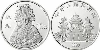 • China Silber 1998 -MAZU- Meeresgöttin, 10 Yuan PP/ Proof
