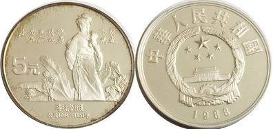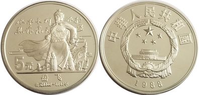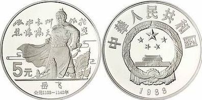 • China Silber 5 Yuan 1988 PP/ Proof "General Yue Fei"