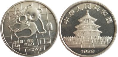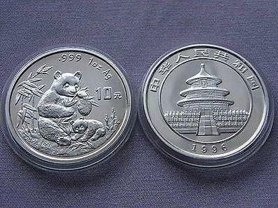 • CHINA 1 Unze Feinsilber 10 Yuan 1996 PANDA , 13. Ausgabe