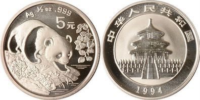 • CHINA 1/2 Unze Feinsilber 5 Yuan 1994 PANDA