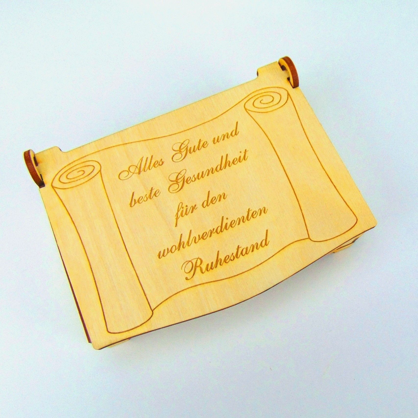Schatzkiste Schatulle zum Ruhestand oder Rente als Gutschein oder Geldgeschenk aus Ho