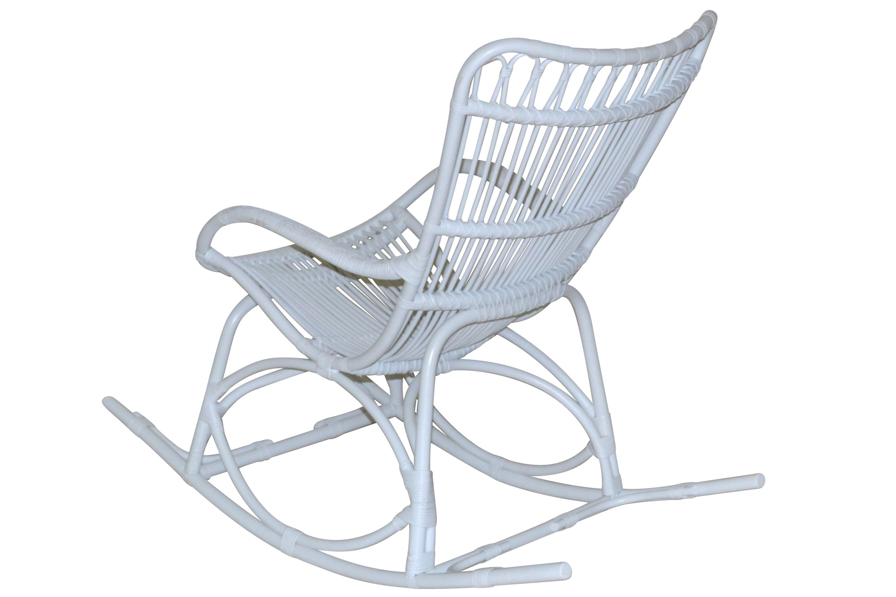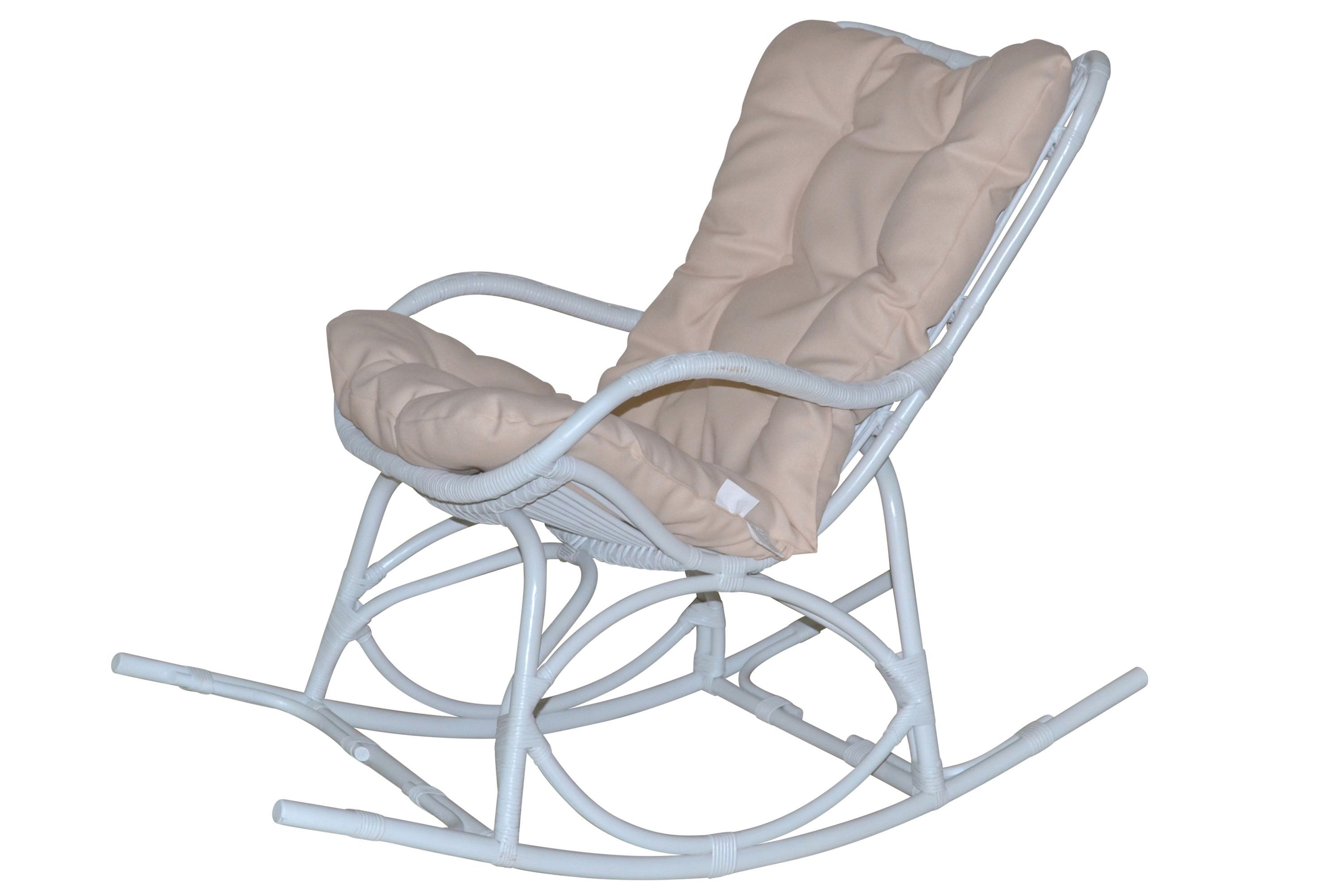 Schaukelstuhl "Chris" aus Rattan, handgeflochten, weiß, inkl. Kissen