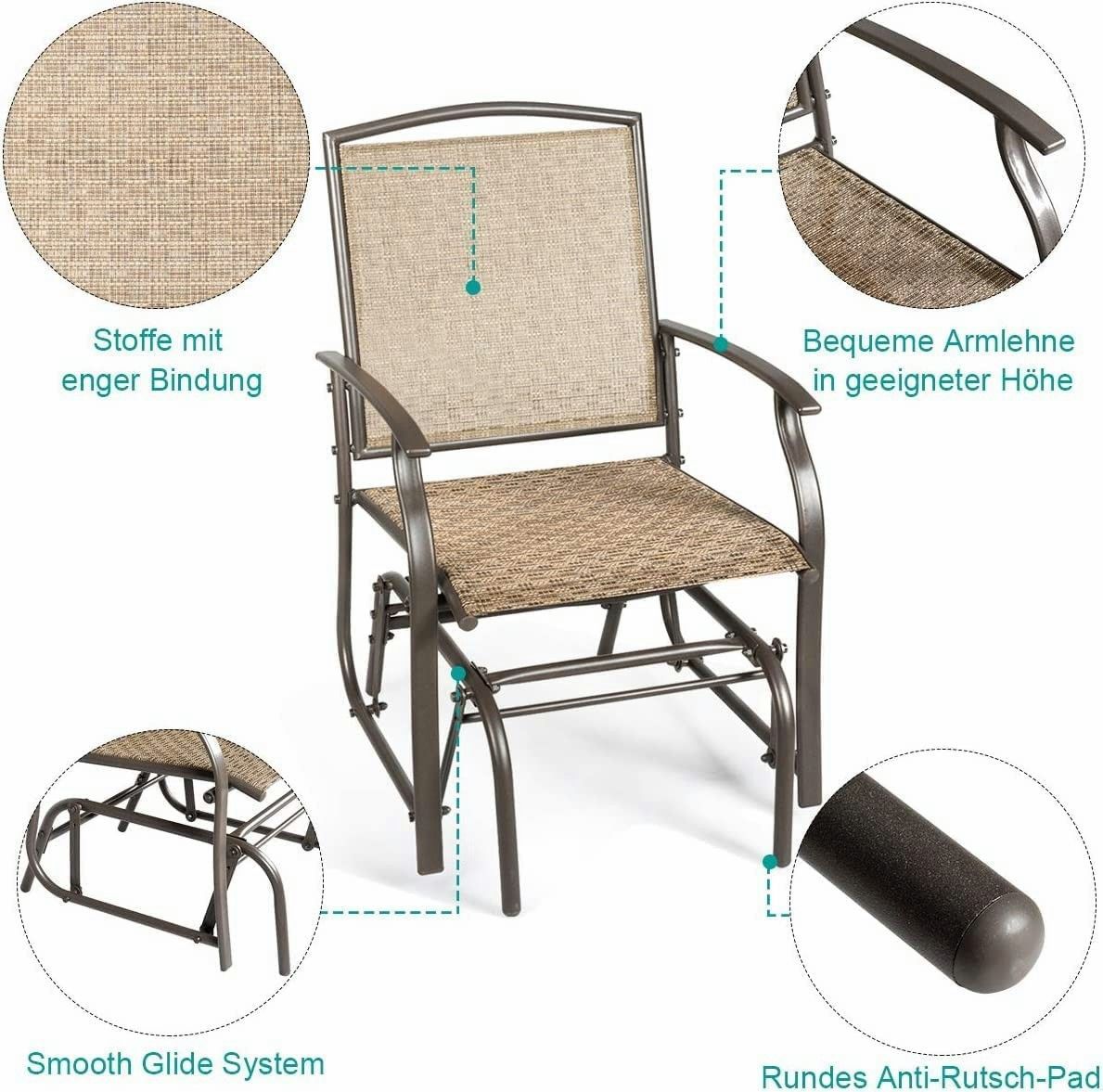 Schaukelstuhl Garten, Schwingstuhl Einzel, Gartenstuhl mit Metallrahmen, Schwingsesse