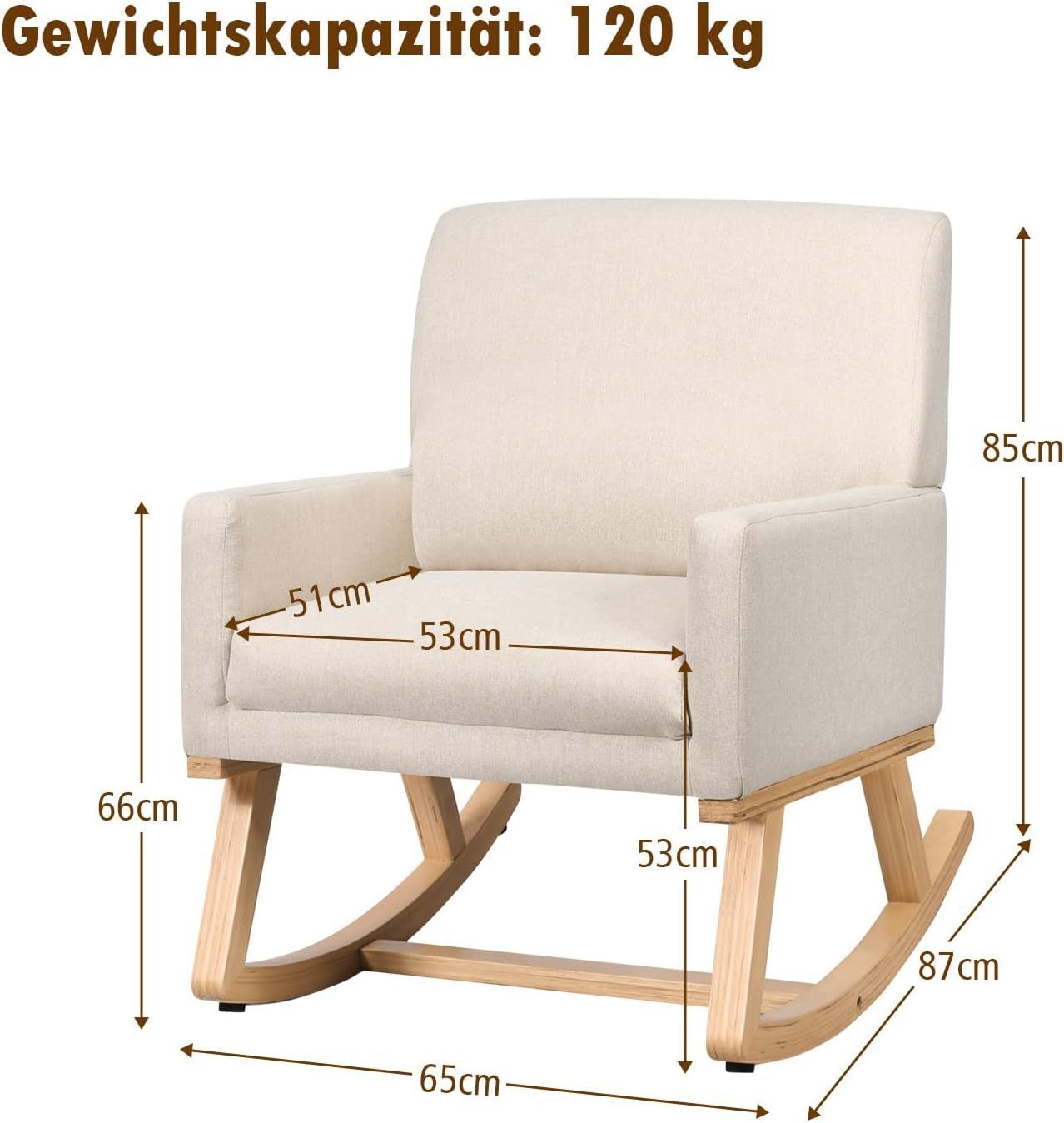 Schaukelstuhl, gepolsterter Schaukelsessel aus Massivholz, Schwingsessel, Relaxstuhl