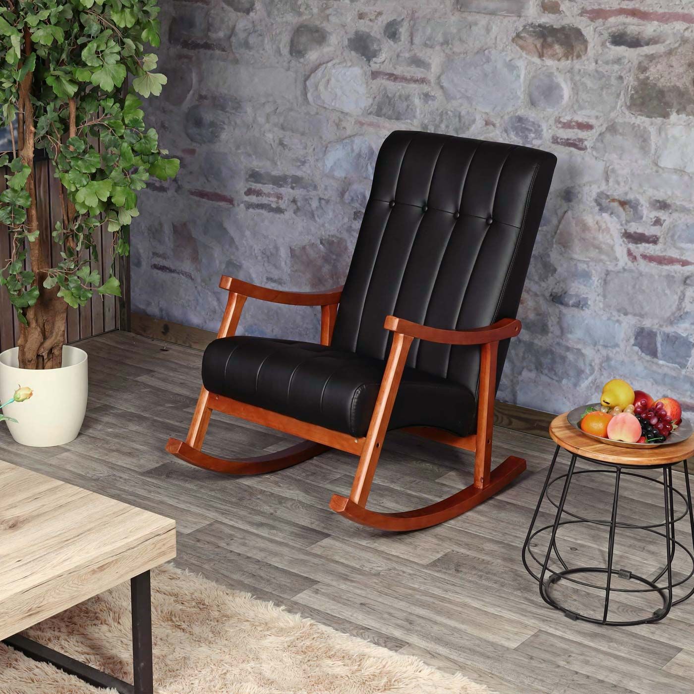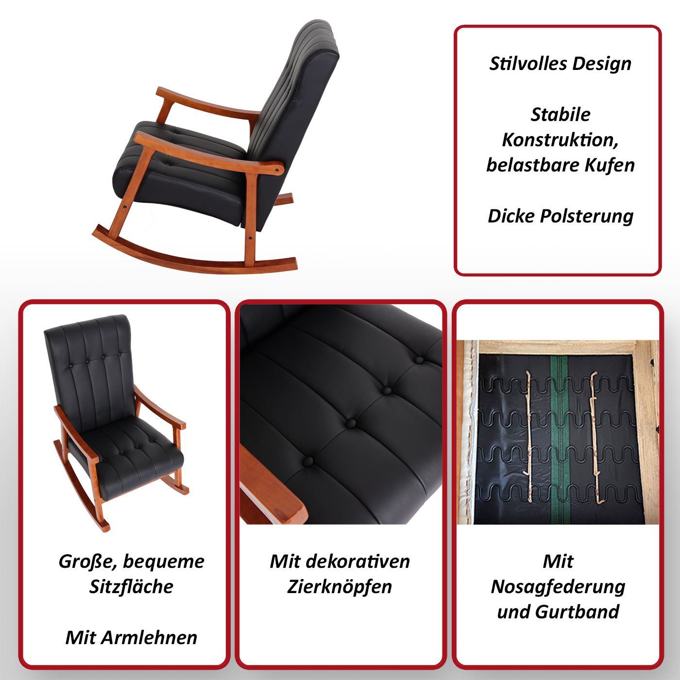 Mendler Schaukelstuhl HWC-K10, Schaukelsessel Schwingstuhl Relaxsessel FSC®