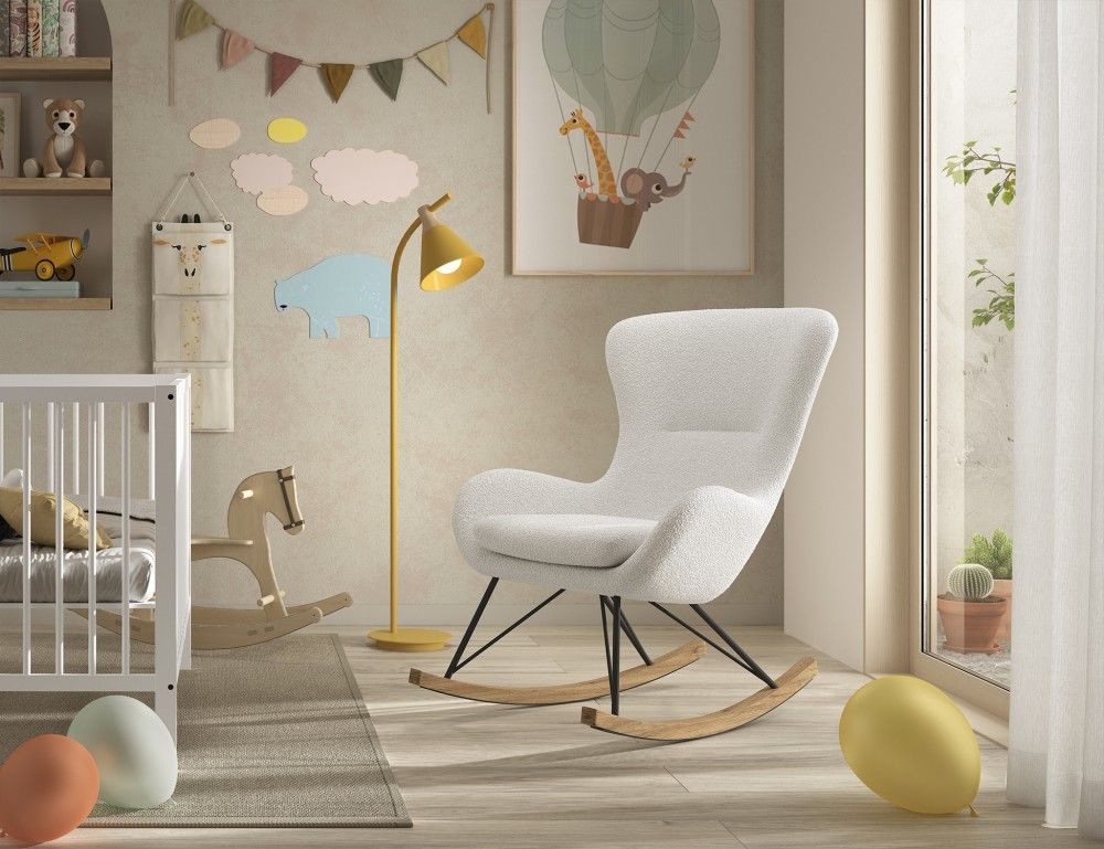 VIPACK Schaukelstuhl Sessel Massivholzkufen hochwertige Polsterung - Bouclé Creme Weiß