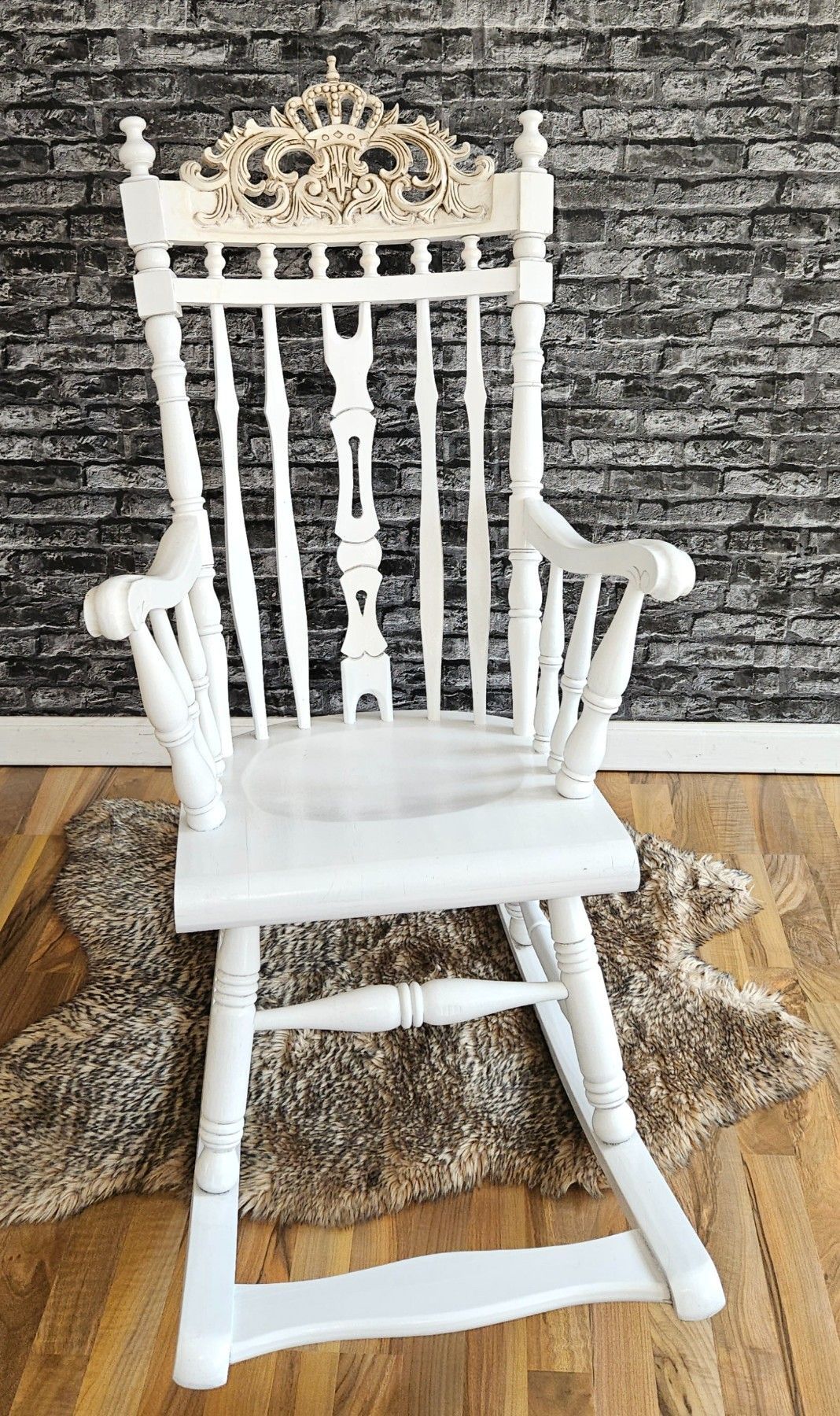 Schaukelstuhl Weiß Krone Schwingsessel Relaxsessel