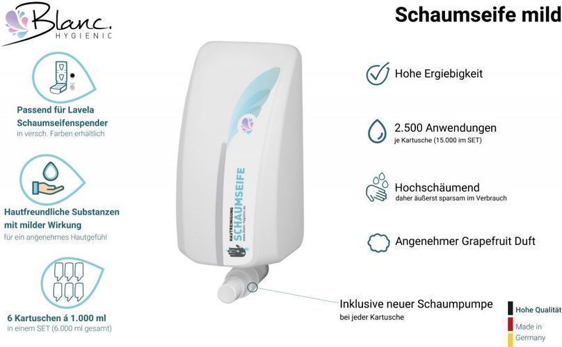 Schaumseife mild Lavela, 6x1-Liter Kartuschen 15.000 Anwendungen je SET