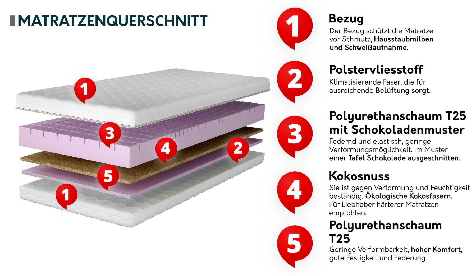 Schaumstoffmatratze Wenus 18 cm H3/H4 Beidseitig verwendbar mit Reißverschluss