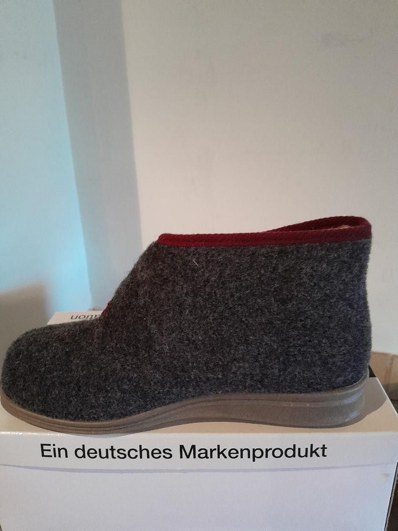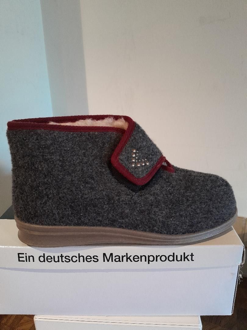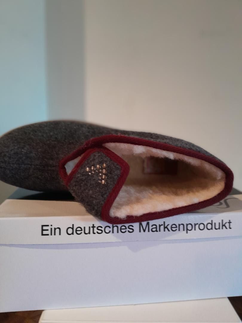 Schawos Damen Hausschuhe Schurwolle mollig warm 2060-24V Bordo / Grau Gr. 36 und 40