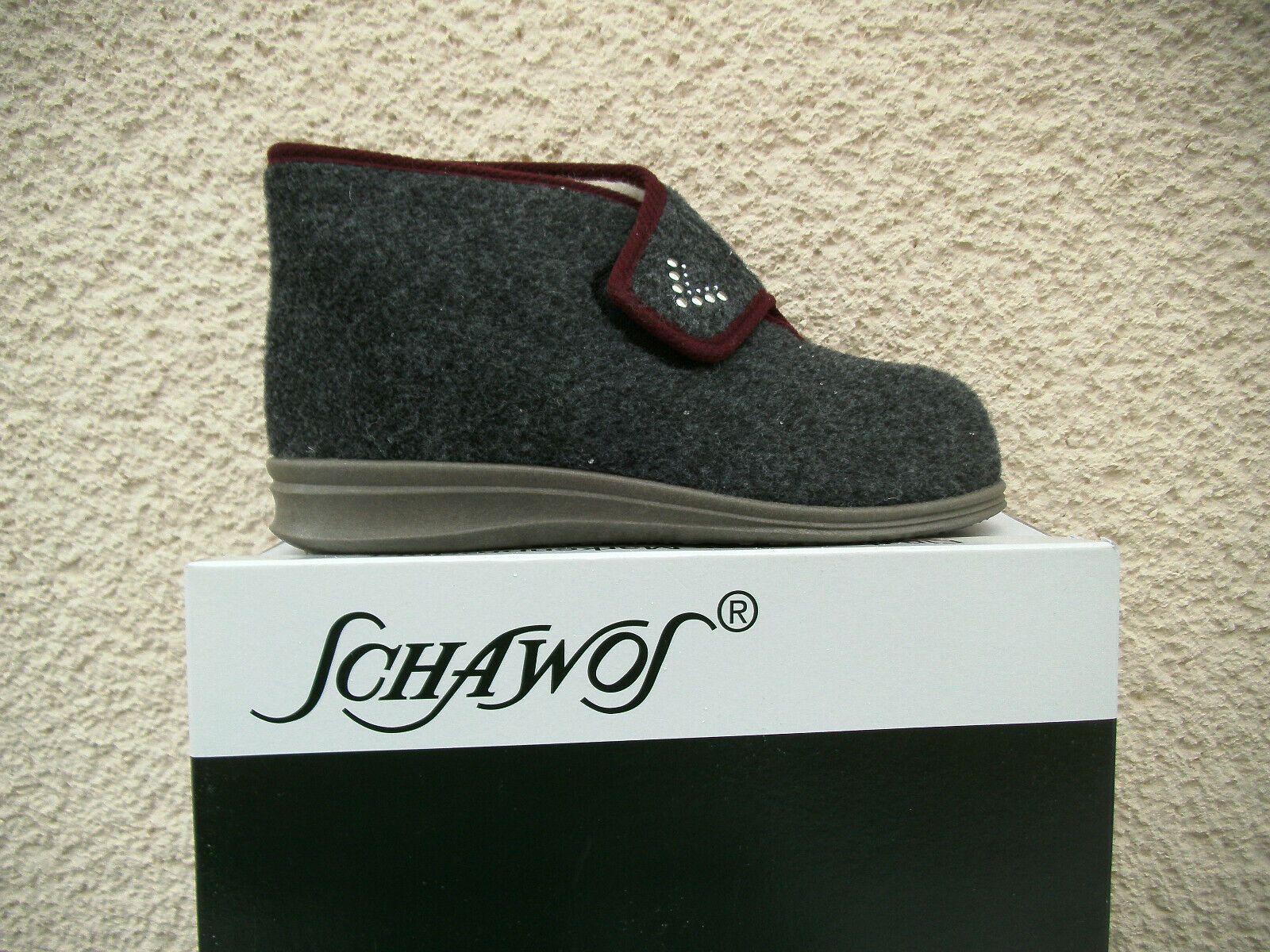 Schawos Damen Hausstiefel Schurwolle Grau Bordo Geschlossener Damen Hausschuh Tun Sie Ihren Füßen etwas gutes und sind gerüstet für die kalten Tage Markenschuhe Made in Germany Einfach reinschlüpfen und wohlfühlen Details: Obermaterial aus wärmenden Filz Innenmaterial und Decksohle aus wärmender rei