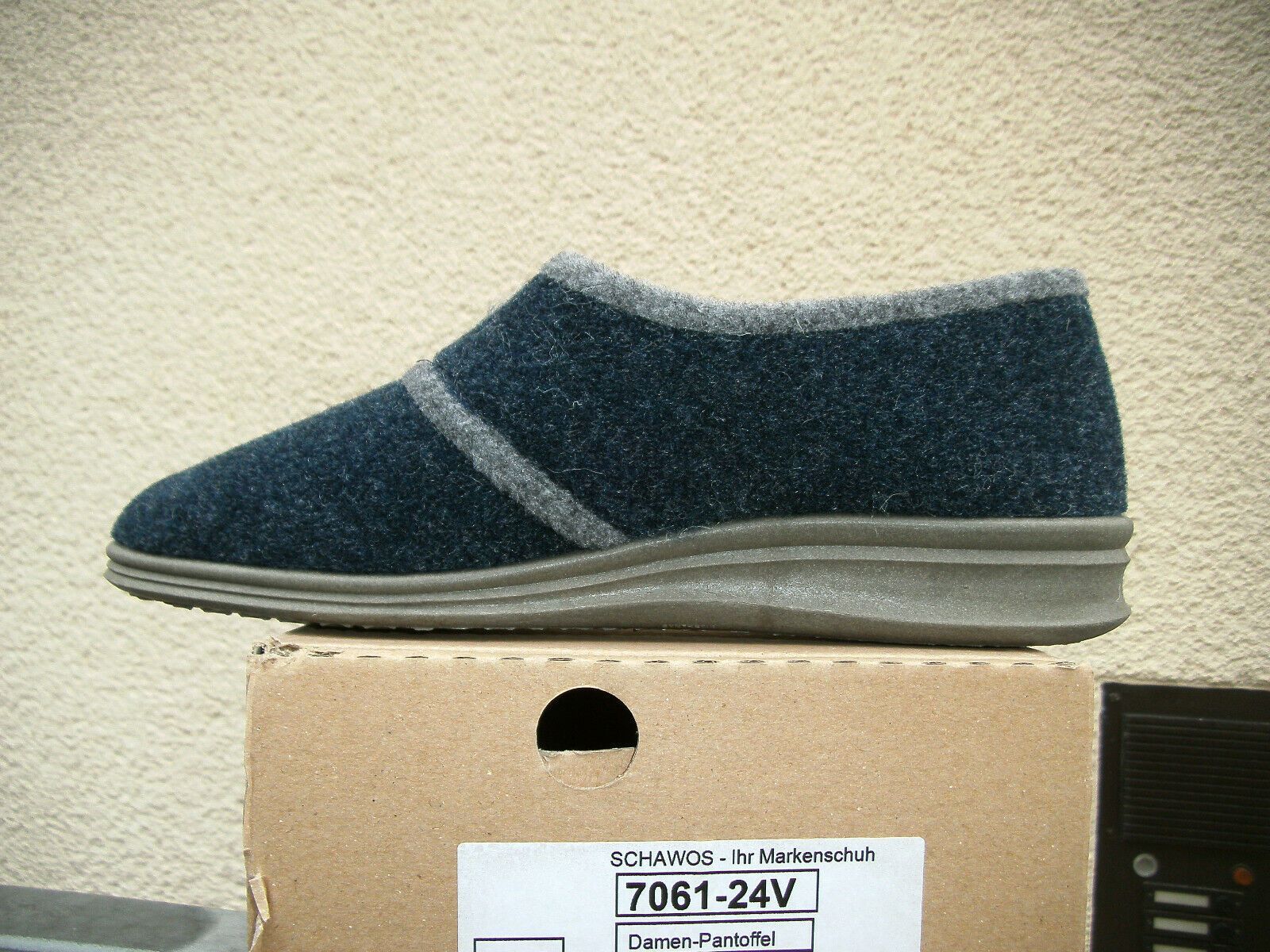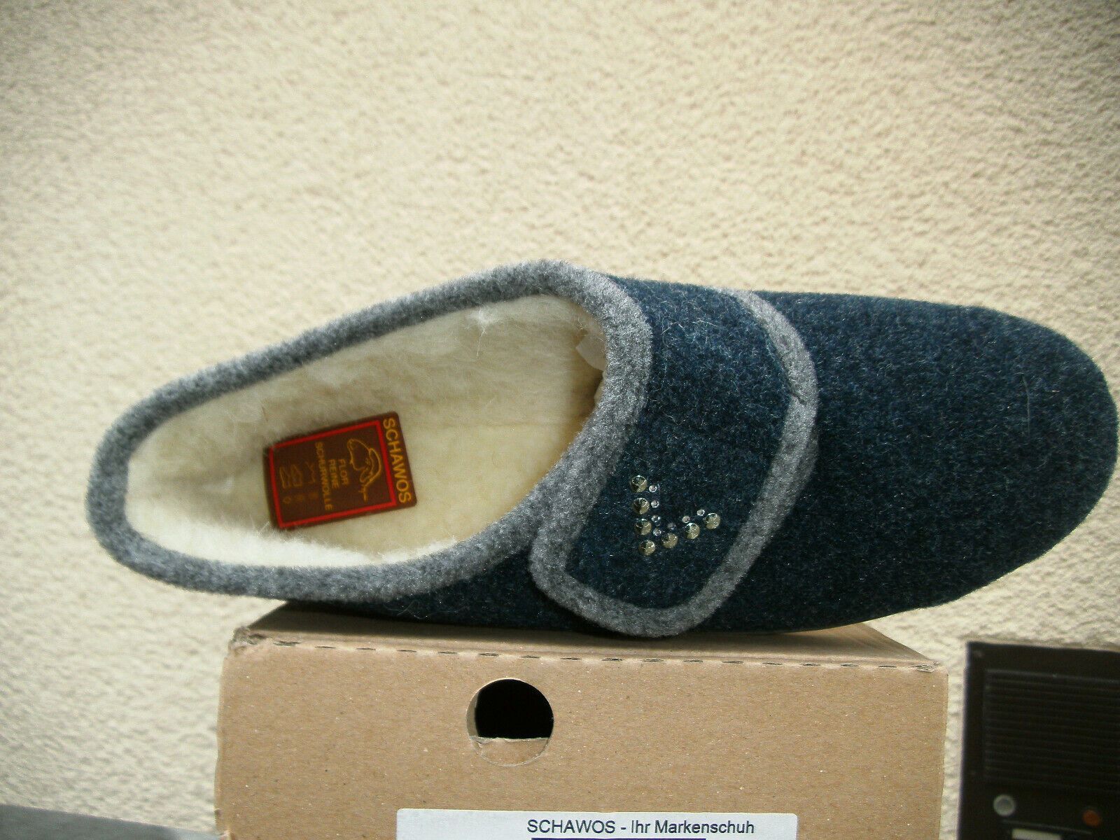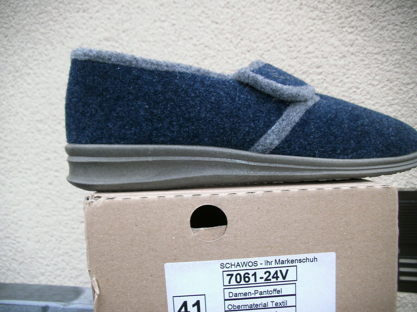 Schawos Damen Hausschuhe Schurwolle mollig warm 7061-24V Marine/ Grau Gr. 36-43