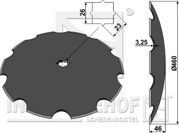 Scheibe für Scheibeneggen gezahnte Scheibe Ø460 S3.25 F 46 C23/26 mm-Vierkantwelle