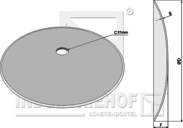 Scheibe gewölbt Scheibeneggen glatte Schneide Ø710x8mm runde Welle Gewölbte Scheibe mit glatter Schneide für Scheibeneggen Zur Montage auf runder Welle Technische Daten: - Best.-Nr.: 31-371357 - Gewicht: 26.000 kg - Durchmesser: Ø 710 mm - Stärke: 8 mm - F: 122 mm - Bohrung: C Ø
