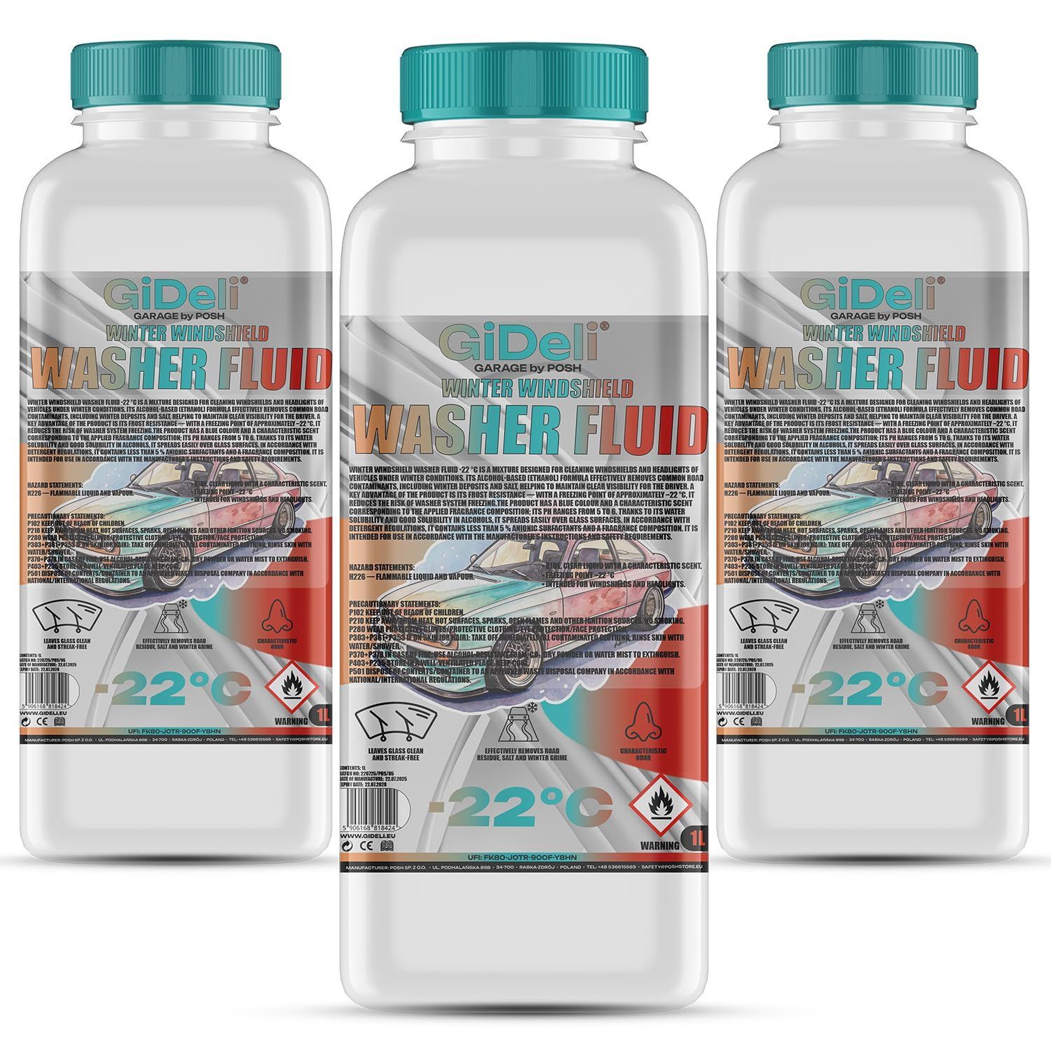 Scheibenfrostschutz -22°C 3L Winter Wischwasser Auto Gebrauchsfertig GiDeli
