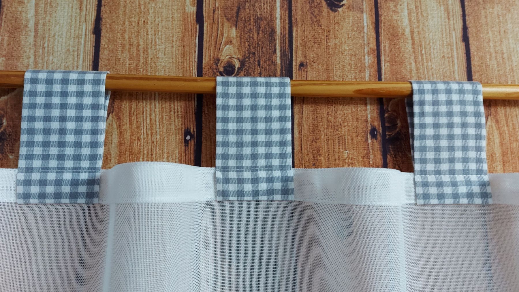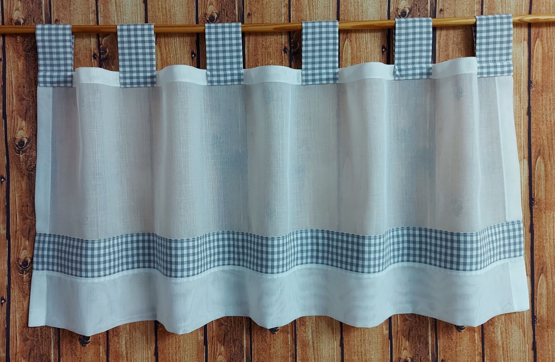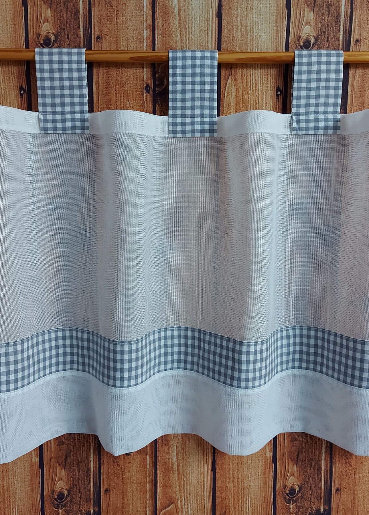Scheibengardine mit Schlaufen Vichy Karo - versch. Höhen/Breiten - grau/weiss