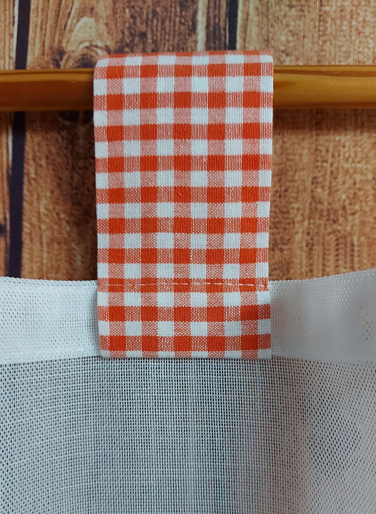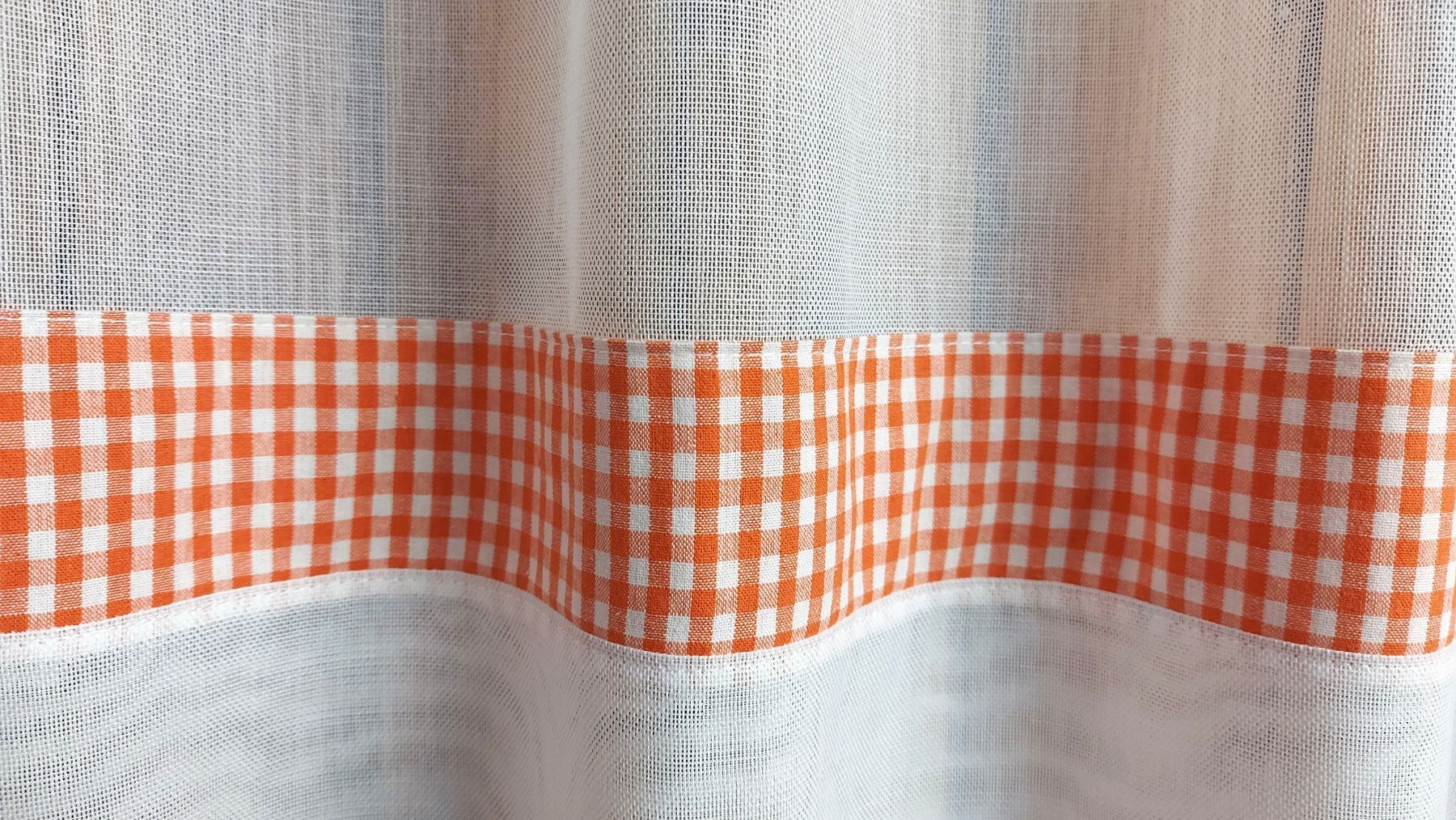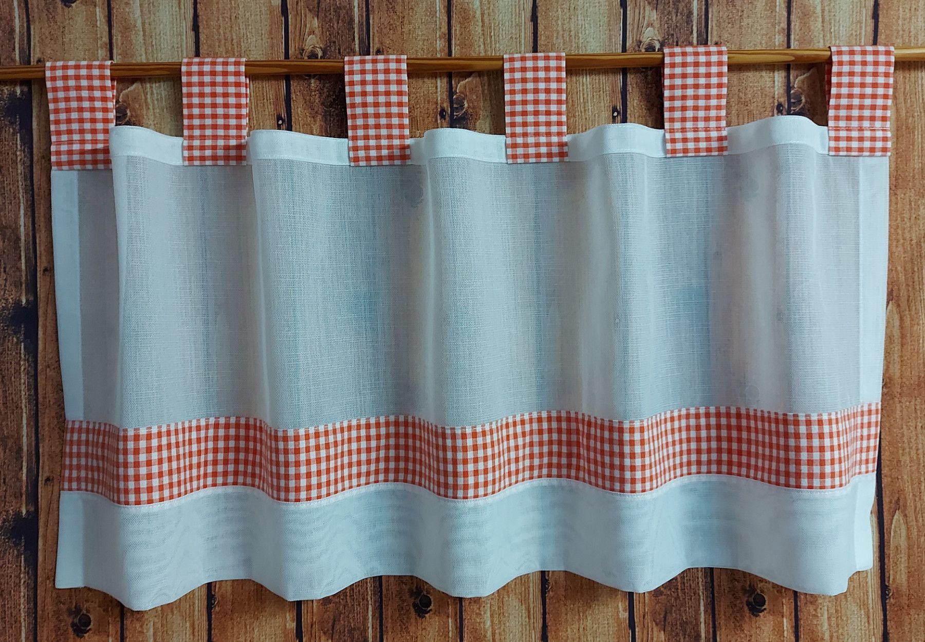 Scheibengardine mit Schlaufen Vichy Karo - versch. Höhen/Breiten - orange/weiss