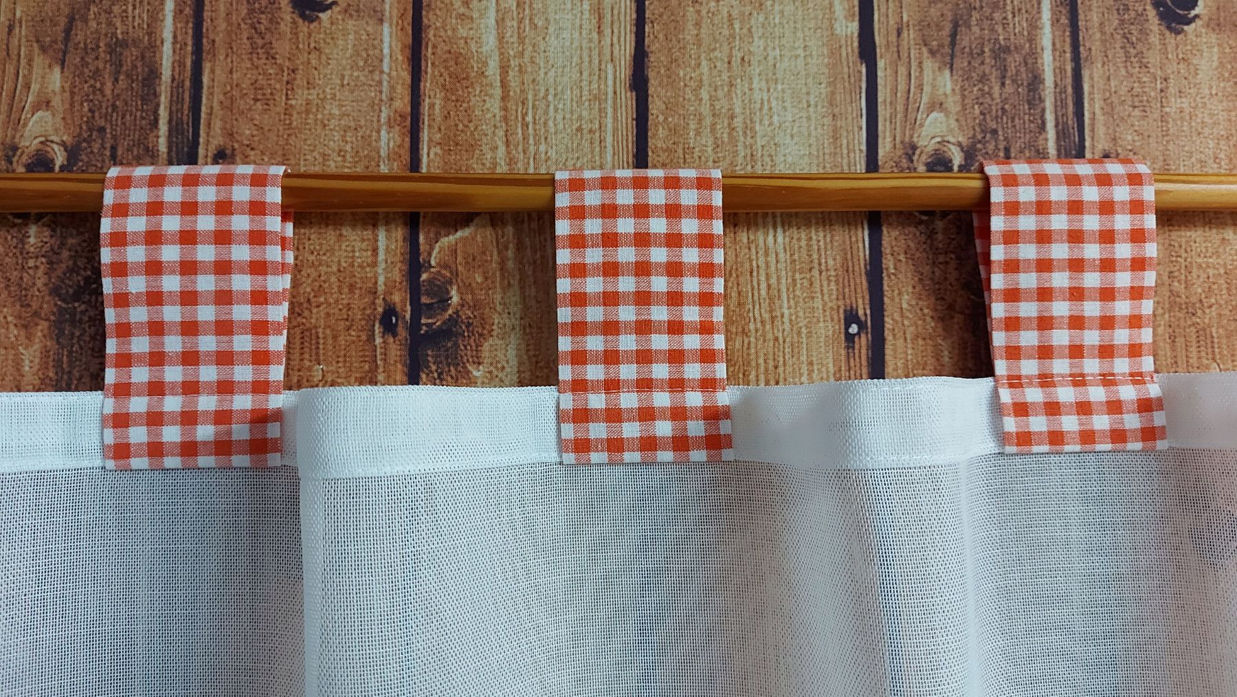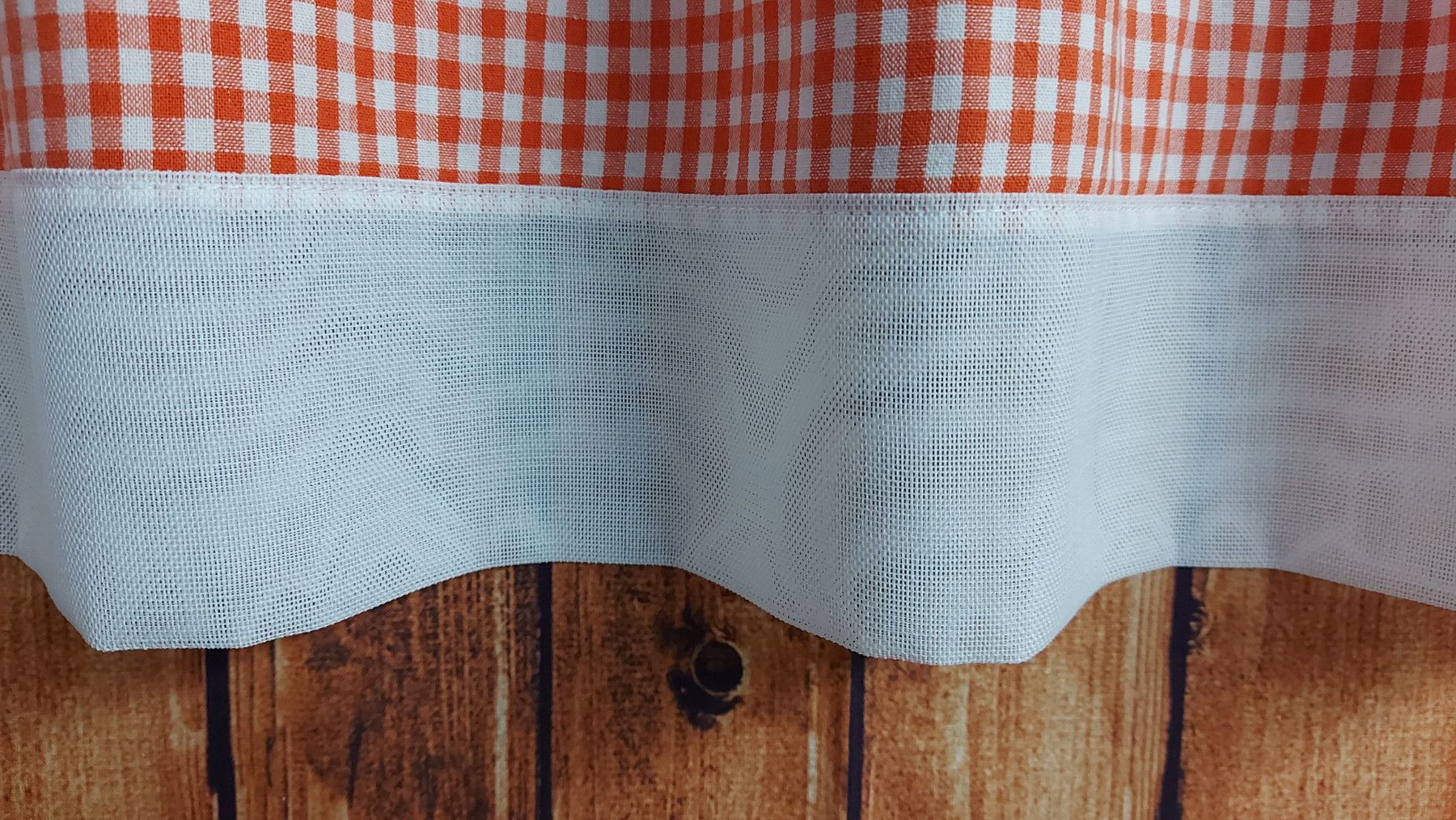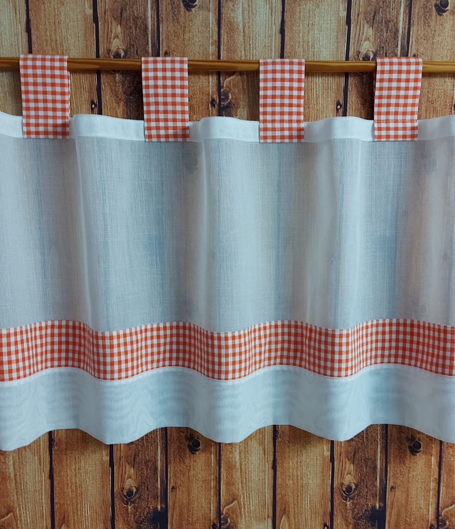 Scheibengardine mit Schlaufen Vichy Karo - versch. Höhen/Breiten - orange/weiss