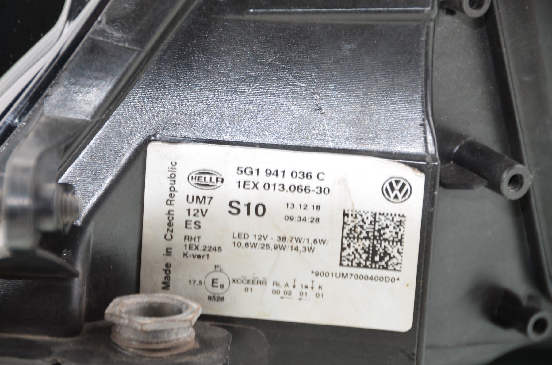 Original car headlight – tested used goods in top condition Condition: Used – professionally inspected, cleaned and fully functional. Reference number (OEM): 5G1941036C Page: RECHTS Version: VOLL LED Scope of delivery: Without control units and bulbs Description: Genuine car headlight (n