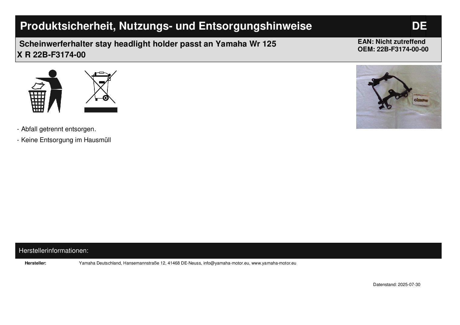 Scheinwerferhalter stay headlight holder passt an Yamaha Wr 125 X R 22B-F3174-00