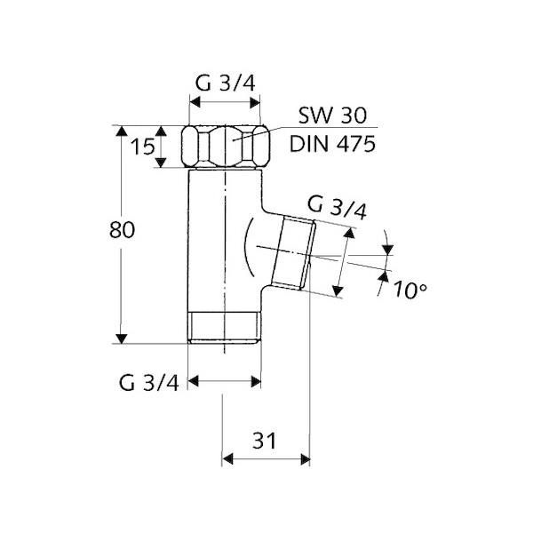 Shell SCHELL T-Stück für NA- und Spültischventile, 3/4, chrom